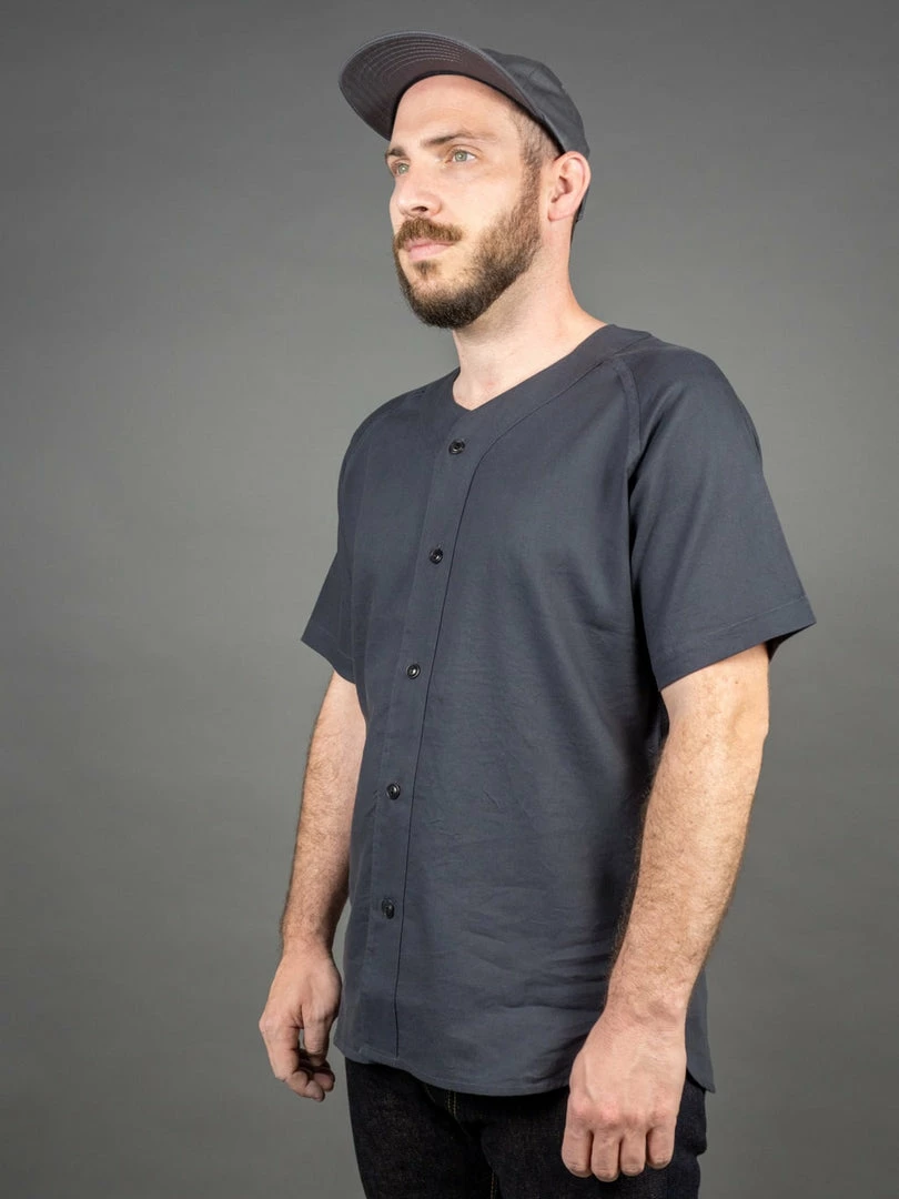 This fabric paired with the raglan sleeves creates a breathable, comfortable shirt perfect for the warm weather. The shirt is finished with custom 2-hole buttons, similar to what you’d find on vintage baseball jersey, made in a hefty corozo.