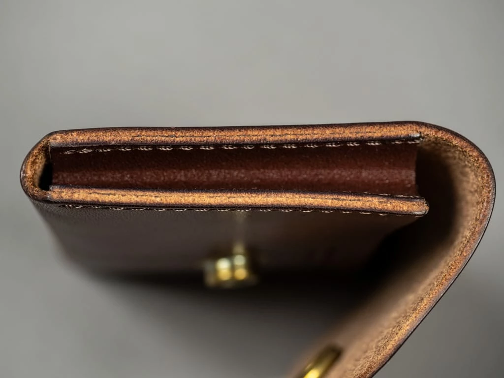 One craftsman does all processes of Kobashi wallet production in Chiba. Time-consuming hand-polished finish.