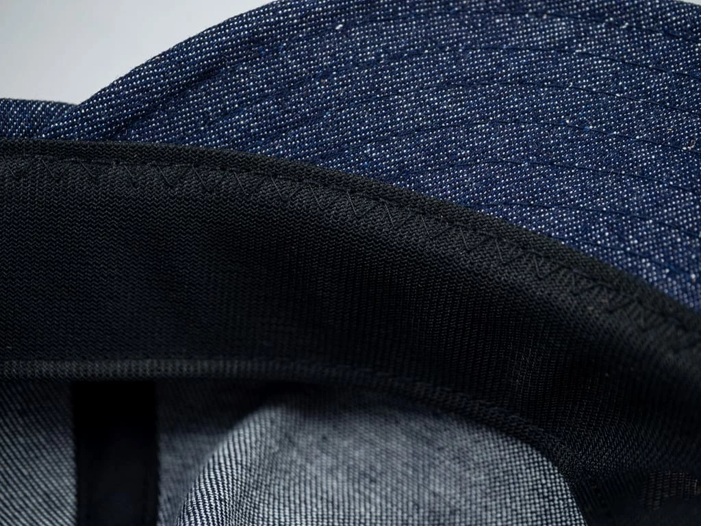 You can cap off your look with this dark indigo denim in the classic six-panel mechanic style with a soft short peak. This cap is adjustable with a leather strap and decorated with a Might Shine label on the reverse. Additionally, six ventilation holes add functionality.