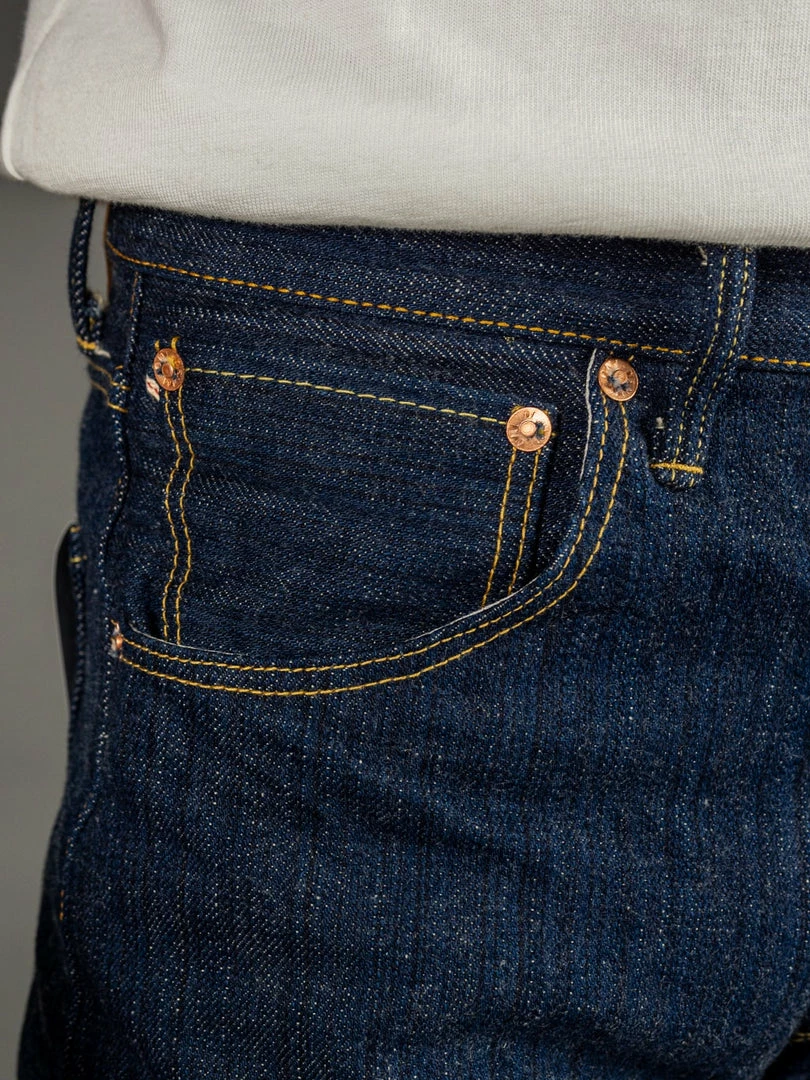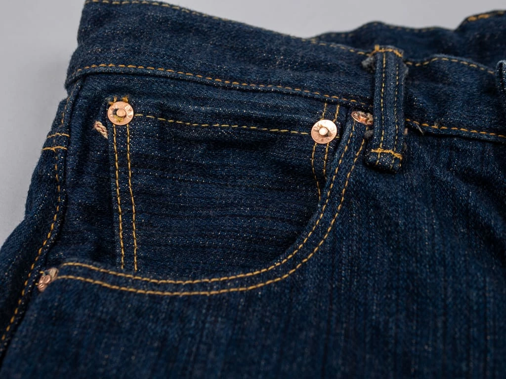 - 16oz unsanforized natural indigo rope dyed Japanese selvedge denim. It is aone-wash version so expect no shrinkage