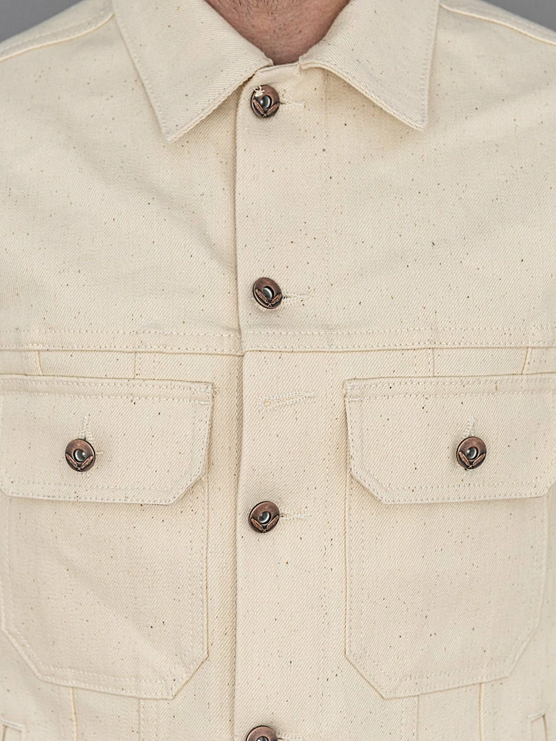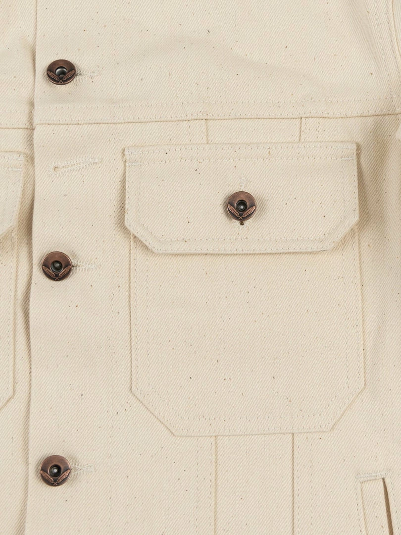 A great looking take on the classic trucker jacket, RGT has taken 14oz Japanese sanforized ecru denim from Nihon Menpu, highlighting all the beautiful small, brown flecks remnants of the cotton plant. It is based on the iconic Type III with some contemporary twists.