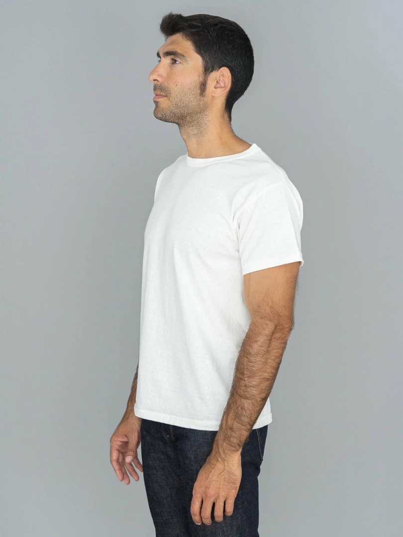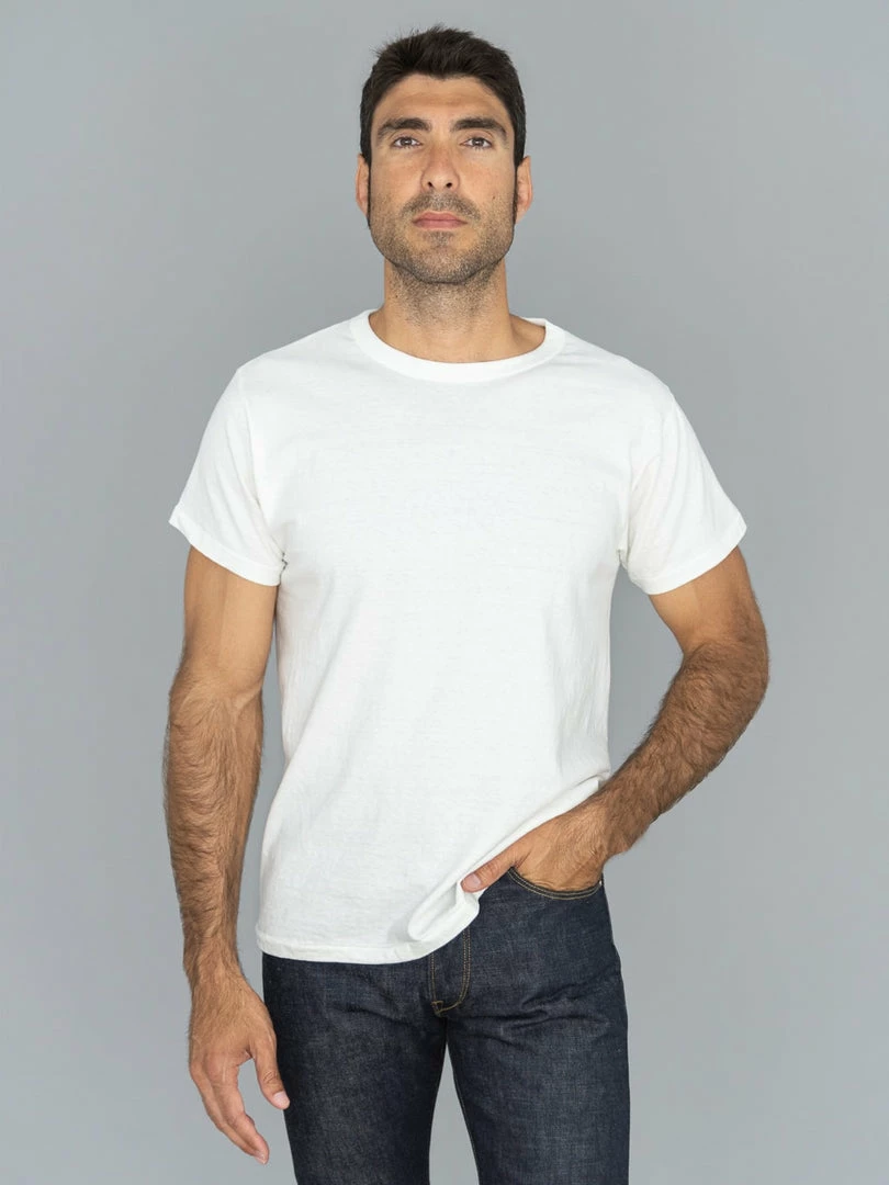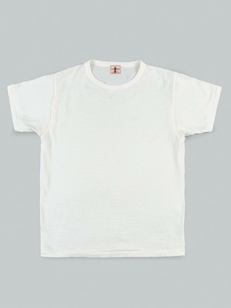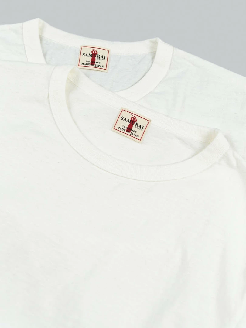 Samurai’s signature tubular-knit style is cut from soft cotton (with a binder neck double-needle stitched) that fits trim and hits high on the bicep, making for a flattering silhouette that looks A-1 on everyone.