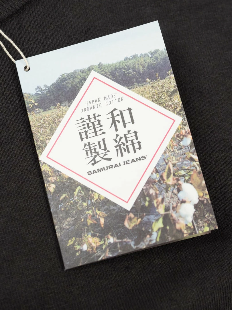 The Samurai Cotton project is the own obsession of Nogami-San, the Samurai Jeans owner, to produce garments with Japanese cotton. But what makes this Japanese cotton so unique? Well, it is plucked piece by piece carefully, and the team works around the typhoons and heavy rains that hit the Sasayama (Hyogo prefecture) area each fall. The plants are planted, weeded, and harvested by hand, refusing to use fertilizers or pesticides of any type. All work is done by a group of Samurai employees, a few dedicated customers, and a handful of friendly Sasayama locals. For this reason, producing t-shirts made of Samurai cotton is super expensive and time-consuming, but the result is an extremely soft and high-quality cotton.