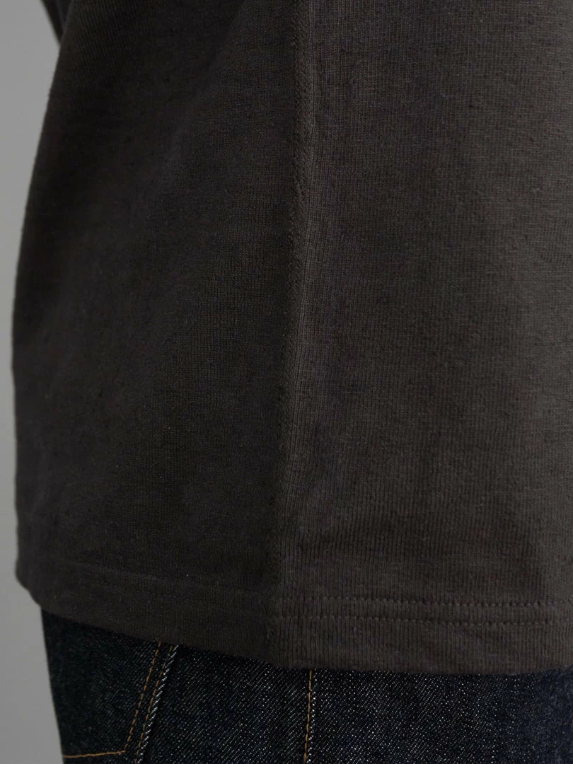 Samurai has done his best to produce the best possible t-shirt. They opted for a #10 slub yarn of their Samurai proprietary Japanese cotton harvested by hand, and they weaved the fabric in Wakayama, on vintage looms. For the construction, the brand chose an old sewing workshop located in Kyoto. They created a 2 needles binder neck and used a 60’s vintage Union Special flat seamer 36200 sewing machine for all the seams.