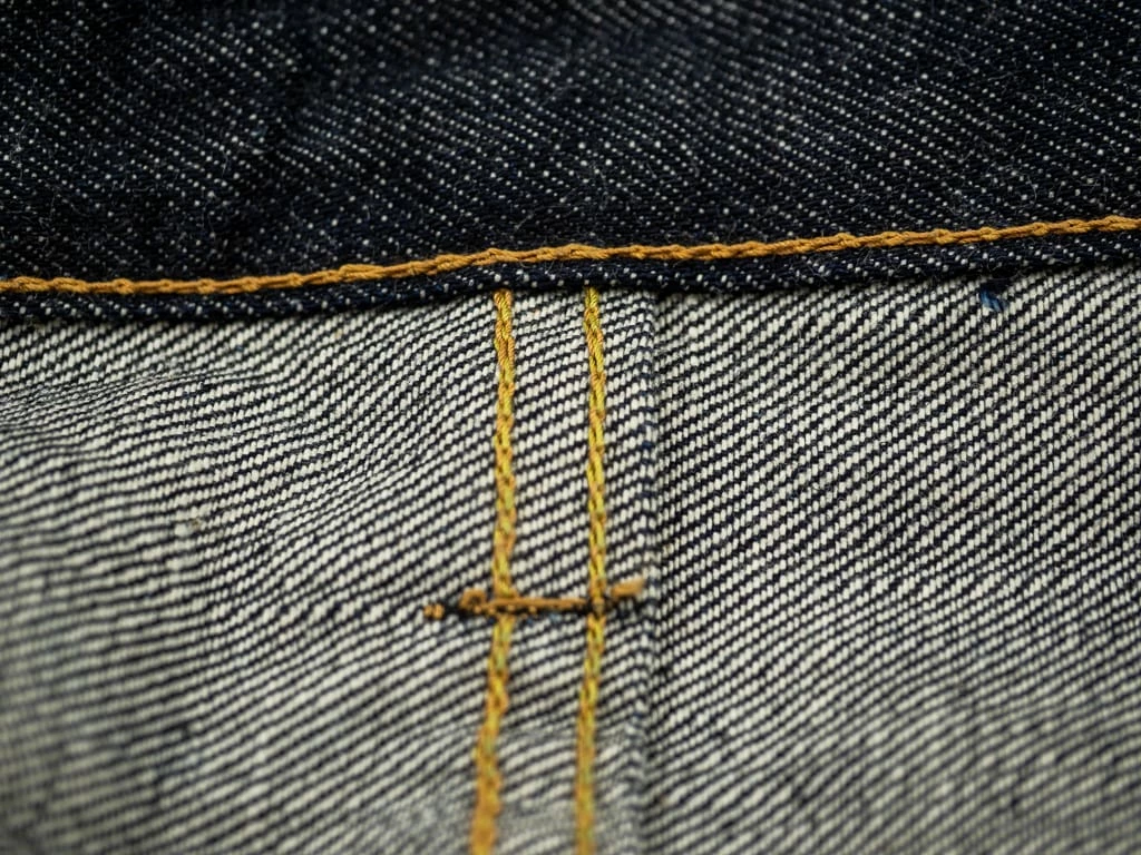 The charm of vintage denim lies in the unique unevenness of the colour when it is worn and faded. In order to reproduce this, it is essential how closely the yarn used to make the denim resembles the original. To produce this denim yarn, Sugar Cane uses an American and Zimbabwe cotton blend. The raw cotton selected in this way is twisted into yarn. Still, because the spinning technology was immature when the vintage denim was made, the yarn used was an irregular yarn of variable thickness, which gave rise to the unevenness of the colour fading. In order to reproduce this, the yarn twisting power is controlled according to the unevenness of the yarn at the time, creating an uneven thread that is as close as possible to Levi’s 1947 501XX denim.