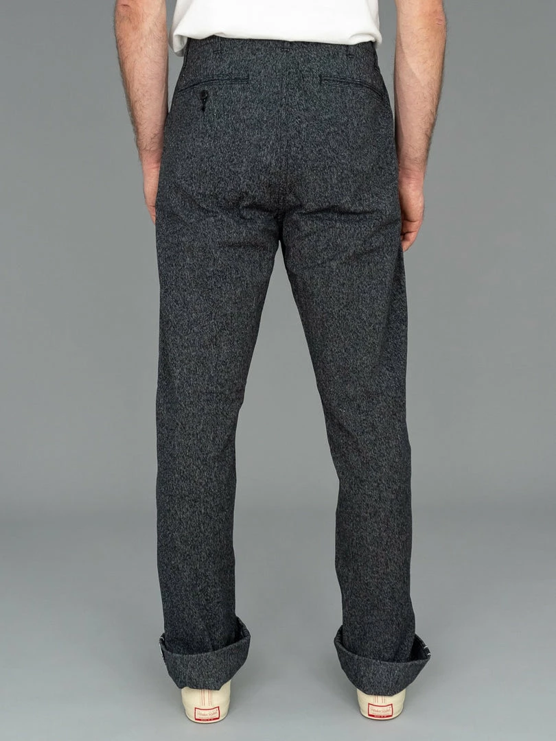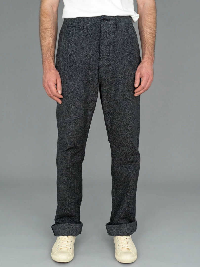 From the factory to the farm, the garage and the delivery route, the humble work pant is an emblem of hard, honest work. The most popular of the last century has undoubtedly been the chino trousers style, and one of the most common fabrics of the first half of the 20th century was salt & pepper.