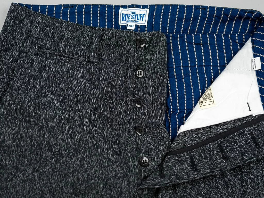 - 10 oz. selvedge salt & pepper, charcoal fabric, milled in Japan. The pants are pre-washed so expect no shrinkage
