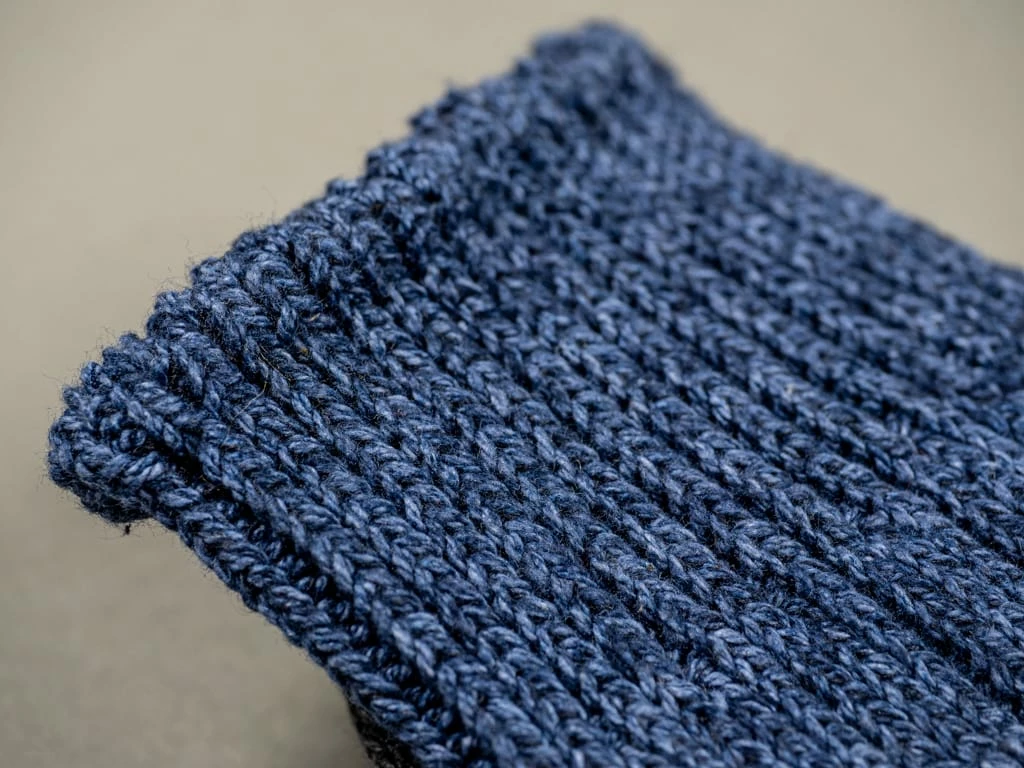 The most fitting for this sock was unevenly dyed recycled cotton yarn. We are not talking about cotton recycled from worn garments, by “recycled cotton,” we mean 100% virgin cotton; yarn made of fibres that were too short to be spun into regular cotton yarn.