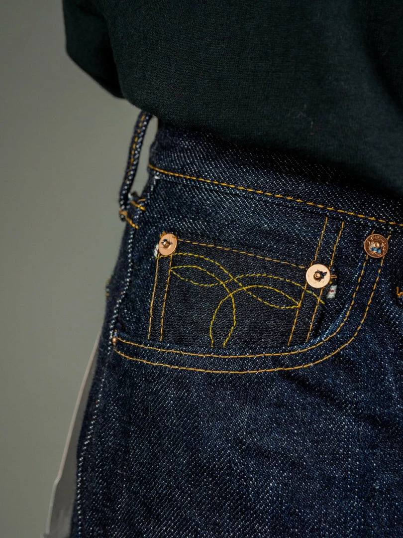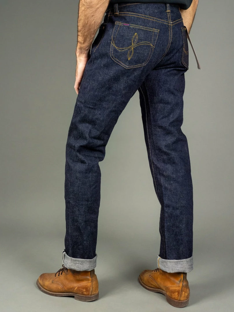 - 21oz unsanforized pure indigo rope dyed Japanese selvedge “Cho-Kiwami” denim. It is a one-wash version so expect no shrinkage