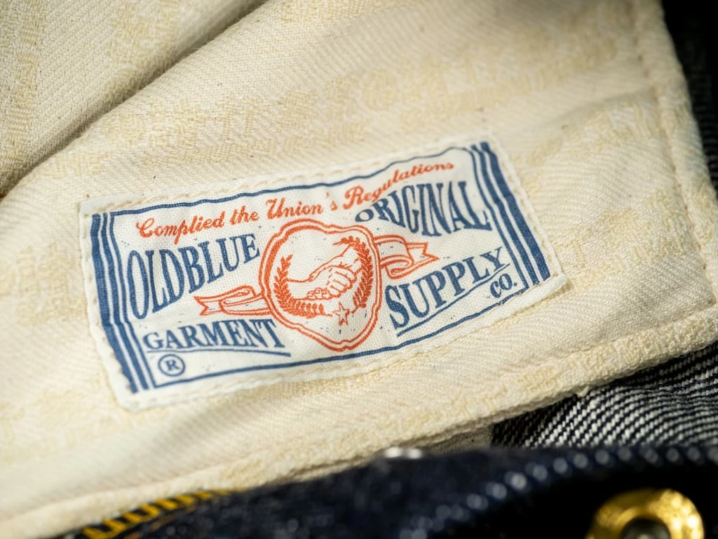 - Oldblue’s signature 21/23 ‘Beast’ denim fabric used on the coin pocket
