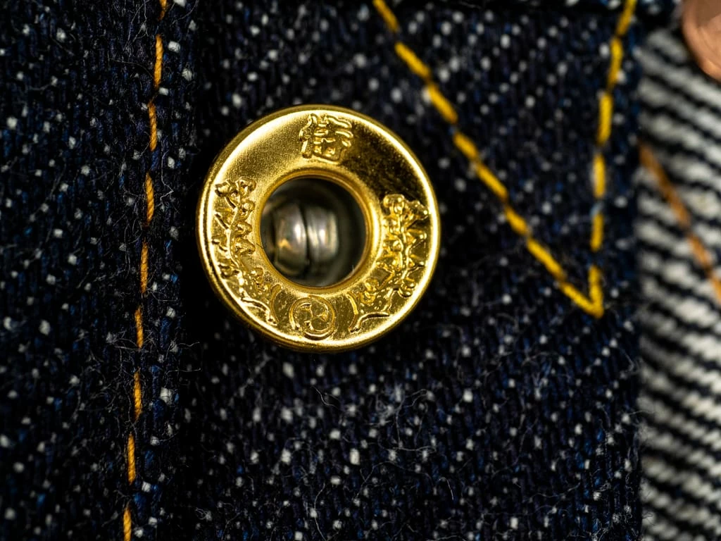 - Top button: Oldblue’s signature copper plated open top Scovill button