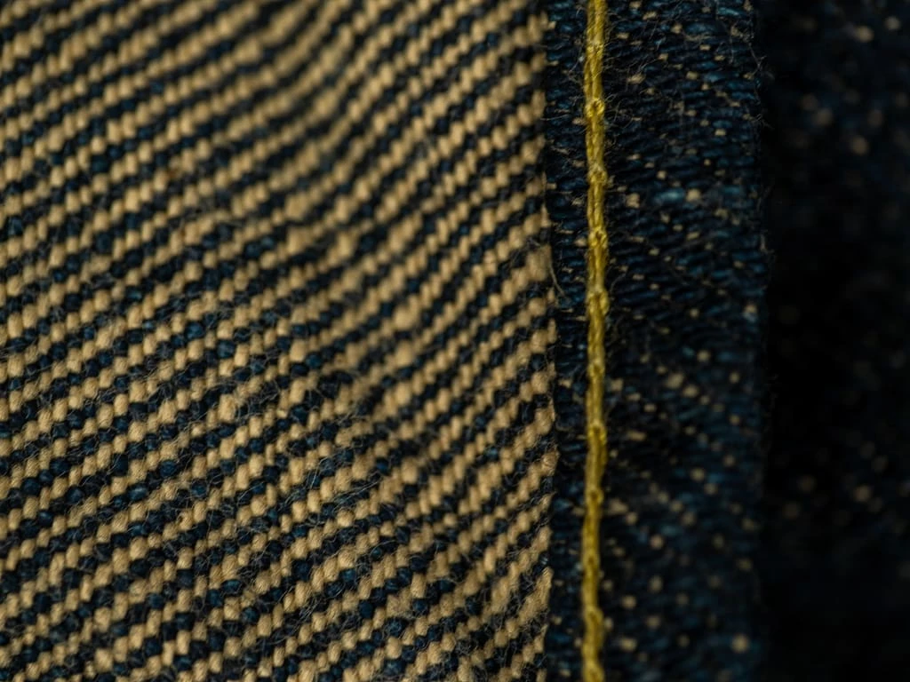 - 20oz unsanforized indigo rope dyed Japanese selvedge denim. It is a one-wash version so expect no shrinkage