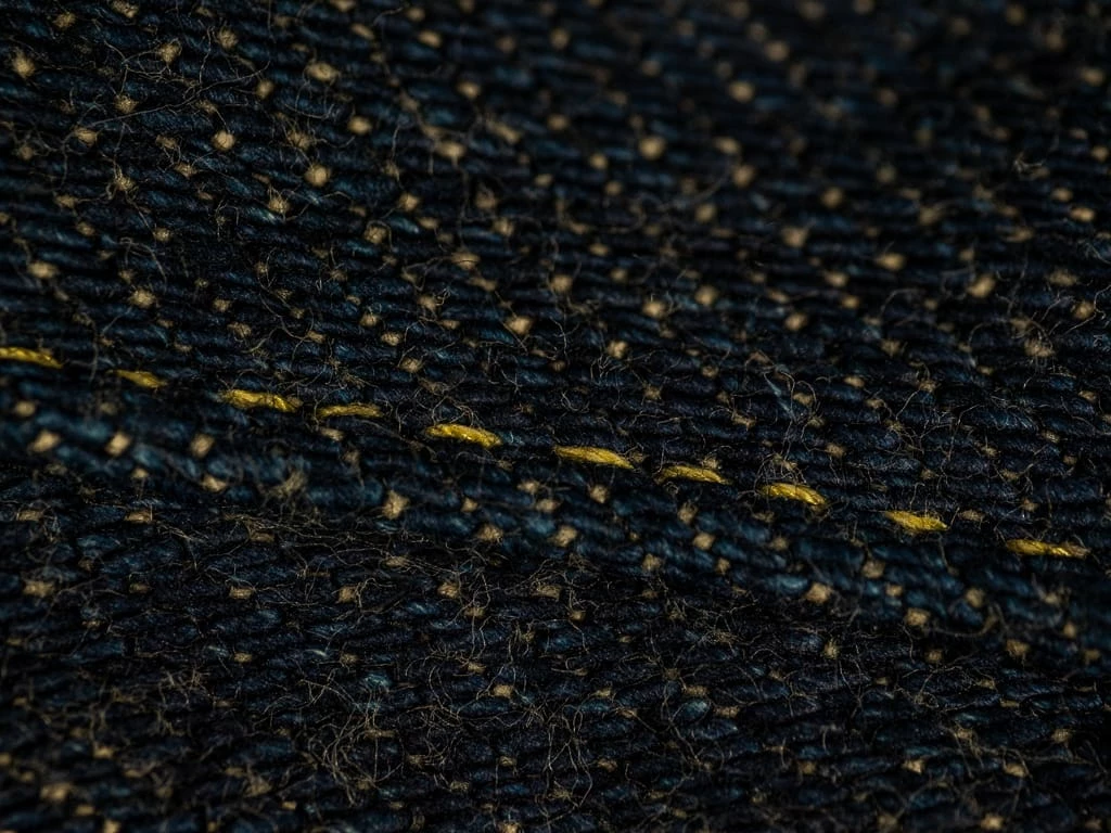 The warp yarn is indigo rope-dyed. The weft yarn is beige dyed cotton. The fading potential is incredible and will showcase a variety of shades ranging over different tones of blue.