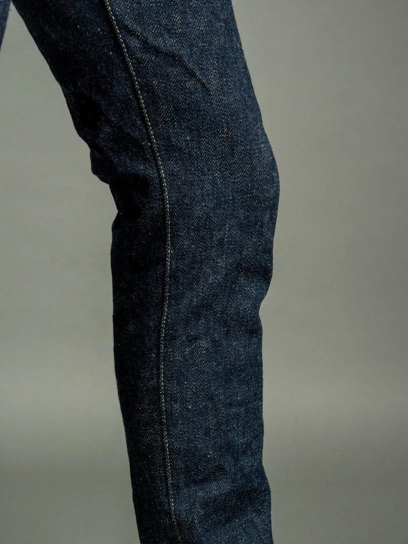 The jeans are made with all the superior-quality ONI details such as copper buttons, high-quality pocket bags, heavy-duty bar tacks and a custom veg-tanned deerskin leather patch.
