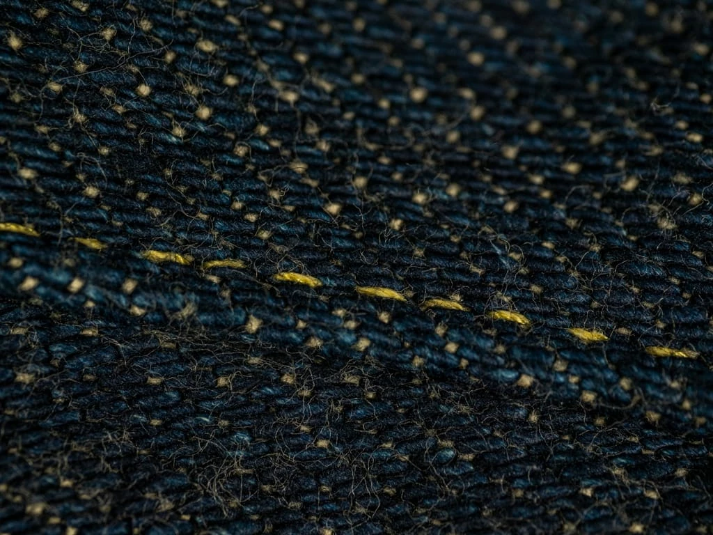 The warp yarn is indigo rope-dyed. The weft yarn is beige dyed cotton. The fading potential is incredible and will showcase a variety of shades ranging over different tones of blue.