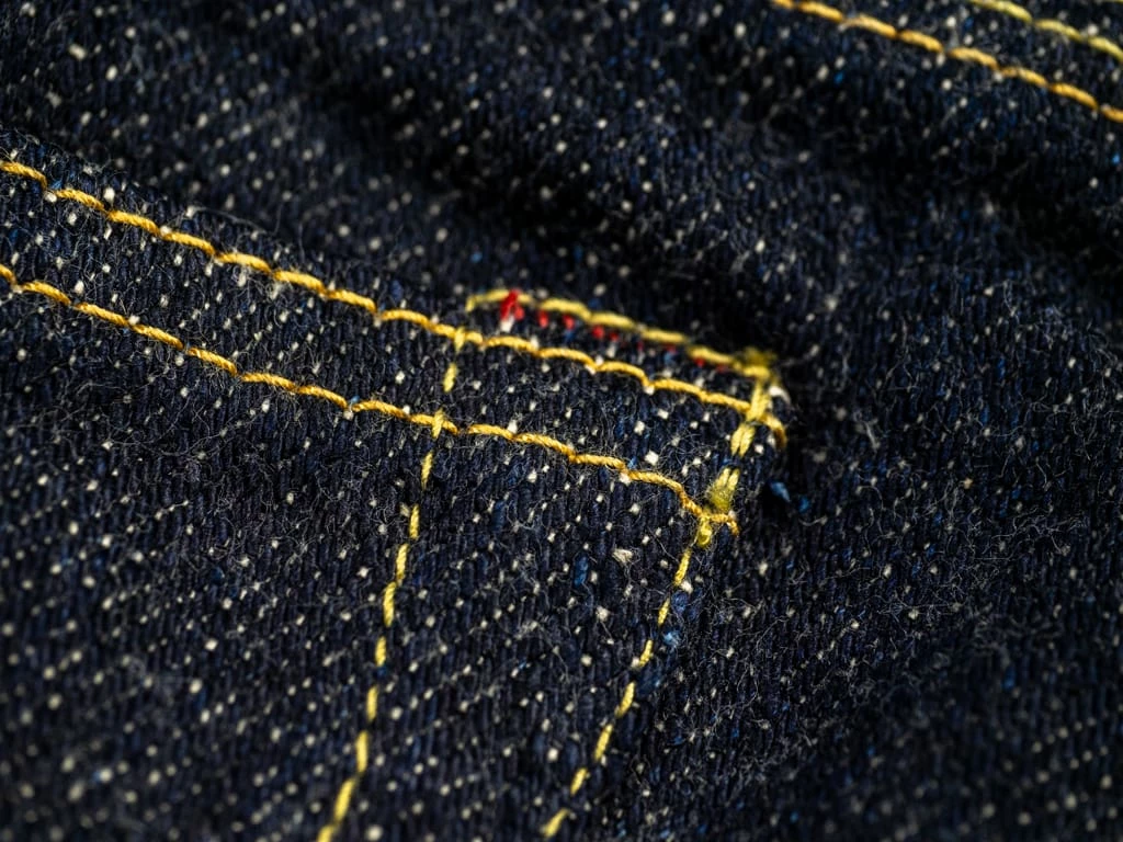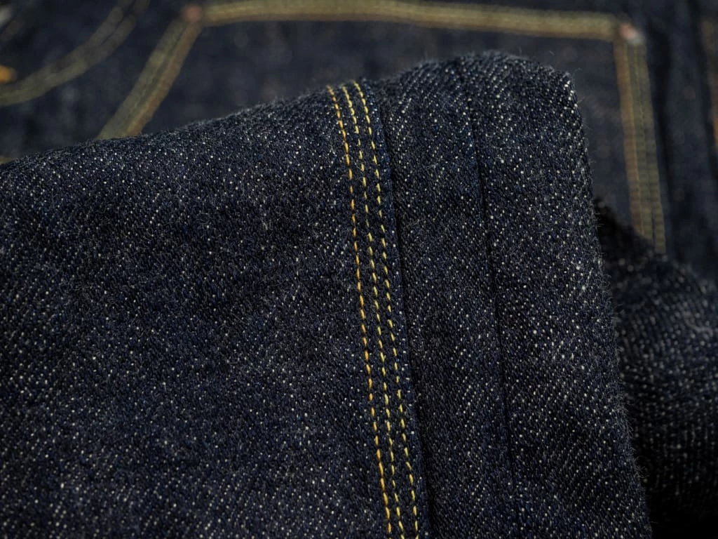 - 20oz unsanforized indigo rope dyed Japanese selvedge denim. It is a one-wash version so expect no shrinkage