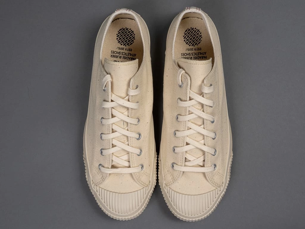 - 100% Hanpu cotton canvas upper woven in Kojima, using an old Toyoda GL9 shuttle loom
