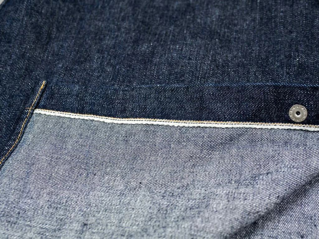 - 10oz unsanforized pure indigo rope dyed Japanese selvedge “Ear of the sword” Serubitchi Denim. It is a one-wash version so expect no shrinkage