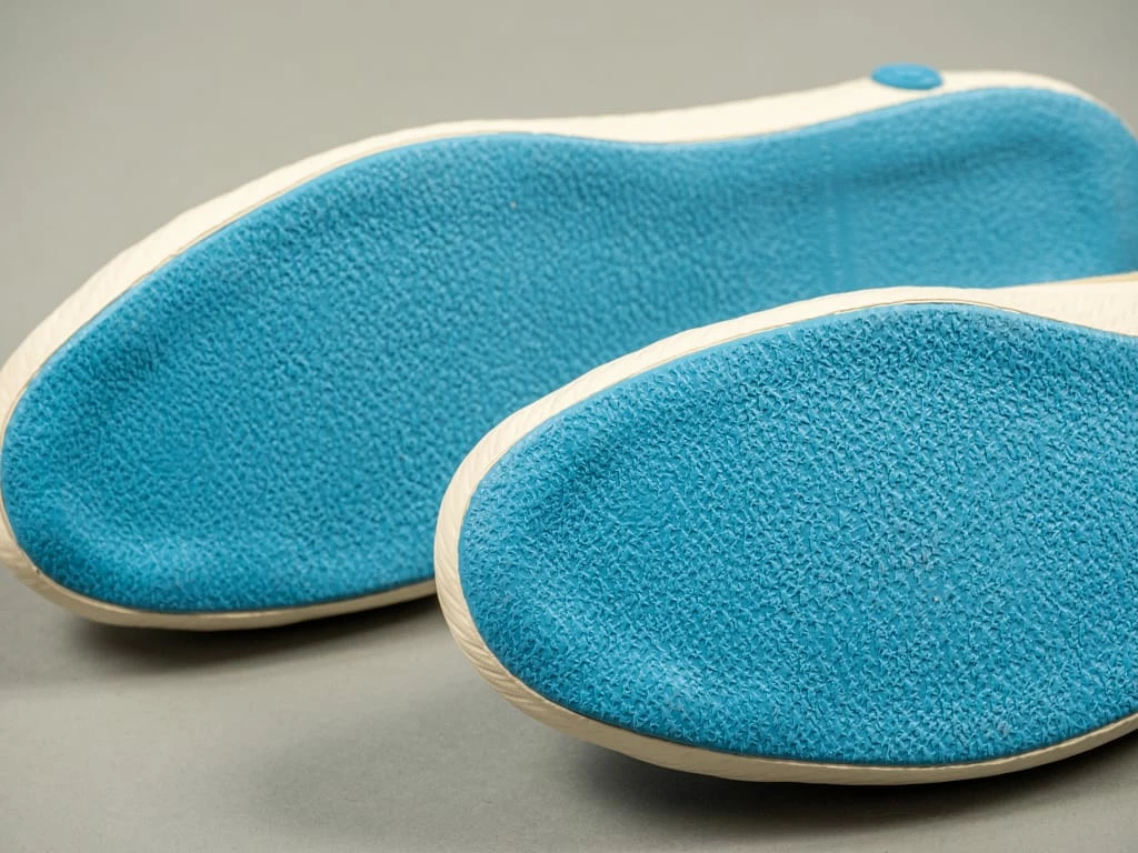 - Non-slip bright blue rubber sole