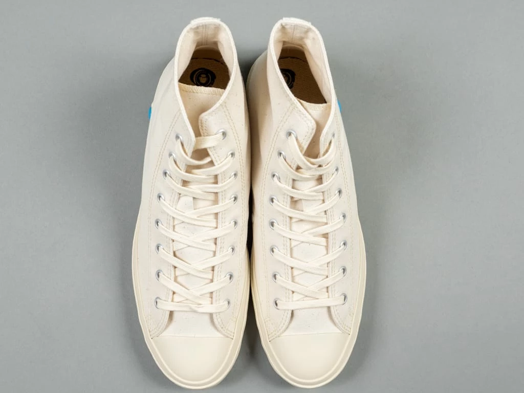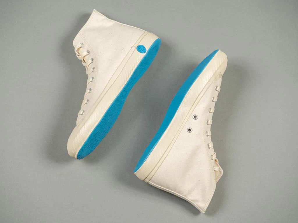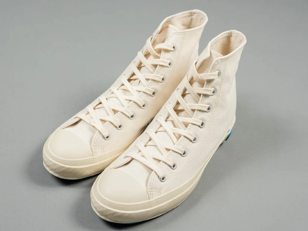 The Shoes Like Pottery High Sneakers have everything you could want from a made-in-Japan low-top sneaker. They feature the kiln-fired vulcanization that can only come from Kurume, Japan. Vulcanized shoes are durable, have a flexible sole and can maintain its shape. The fine quality that comes from this process can only be achieved by the hands of a skilled craftsman.