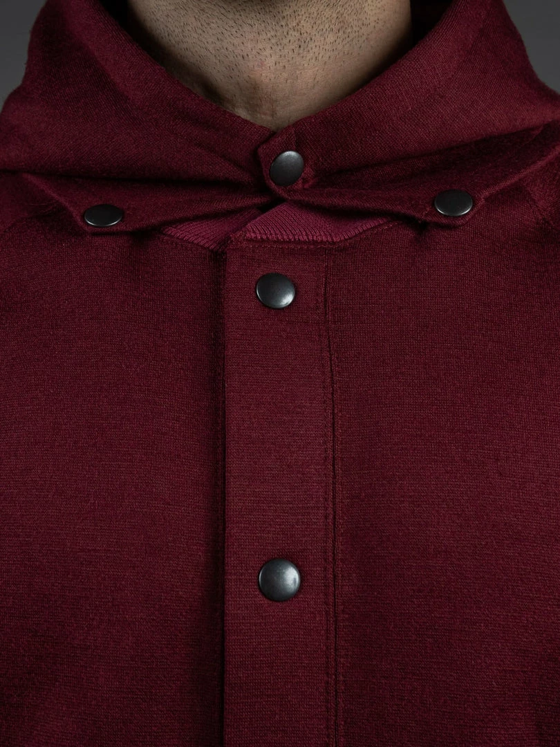 What differentiates it from a regular athletic jacket is the hood. Stevenson Overall Athletic Jacket has a detachable hood with snap buttons. You can attach or detach it as you like quickly.
