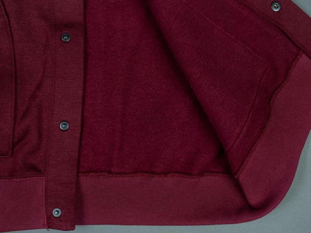 The fabric is custom knitted with wool yarn on the outer layer while it is cotton on the inner layer. This combo enables the material to be warm, soft, comfortable and creates a dense touch with a classic feel.