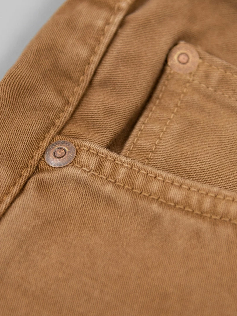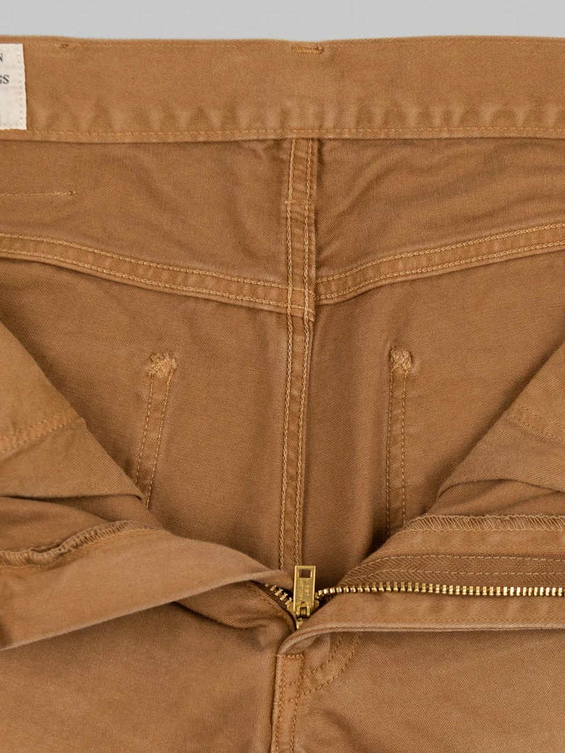These lightweight jeans are one of the main pieces of this new Kusaki zome SS22 collection. They have been garment dyed with Kakishibu, an all-natural dye from the Heian period -more than 900 years ago- fermented from the juice of unripe persimmons to create the natural khaki coloured dye.