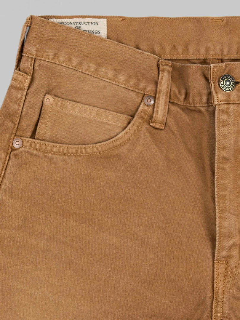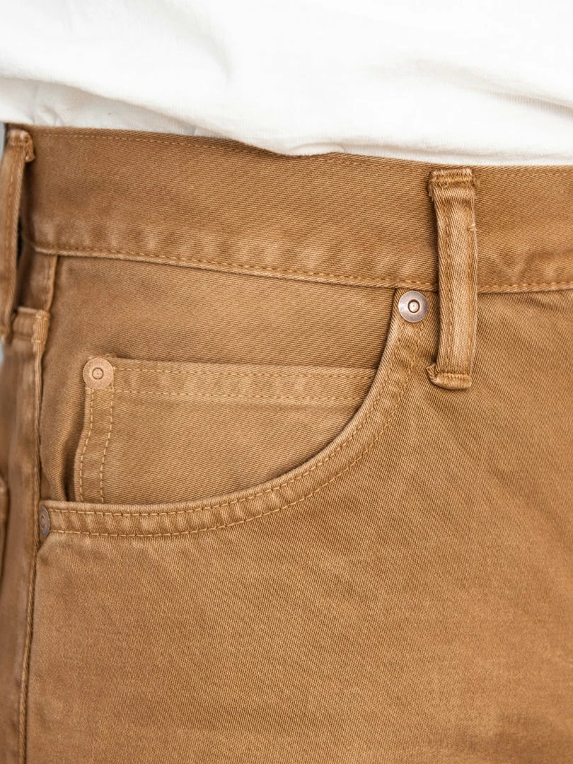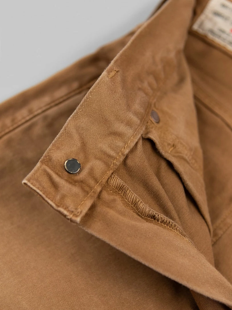 Among its details, we can find a fantastic customized Studio D’Artisan whiskey leather patch, branded custom buttons and a Universal brass zipper from Kentucky. The Relaxed Tapered fit simple taper from the knee down with a close leg opening, still offering plenty of room in the thigh and top block with a mid-high rise.