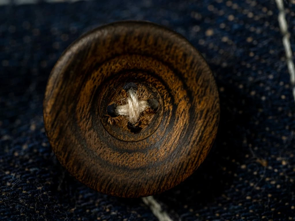 For this Limited edition, Studio D’artisan has omitted all the metal hardware in an attempt to create a more conscious and natural pair of jeans. With both the warp & weft using a natural Fox cotton Foxfibre®, The warp yarn is dyed with Awa Masai natural indigo which is grown in Tokushima. The composition of the Selvedge also takes a sustainable stance and four-button fly featuring Original Studio D’Artisan leather-backed wooden buttons and a sewing thread made of pre-dyed cotton complete the full organic construction.