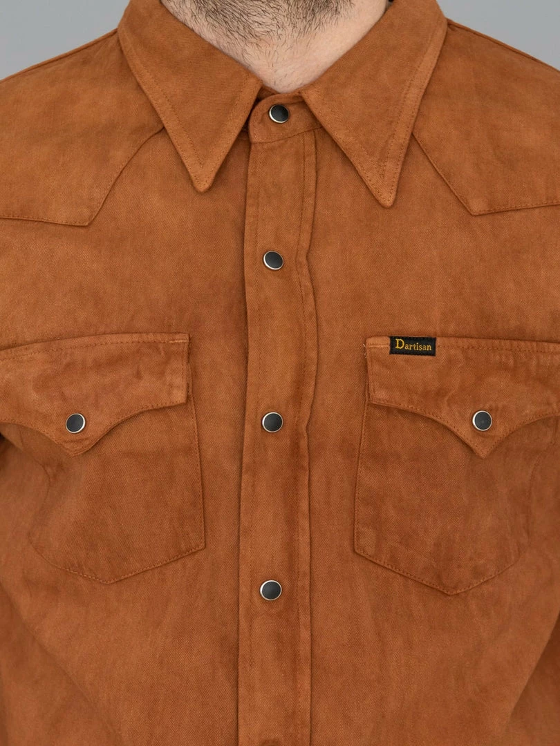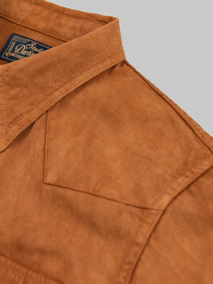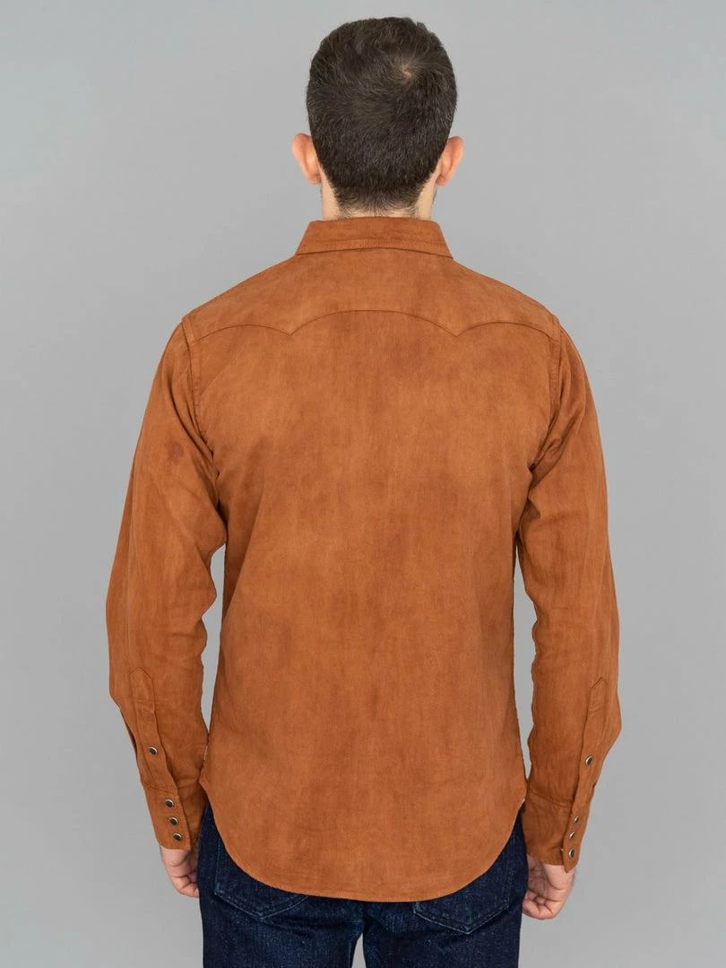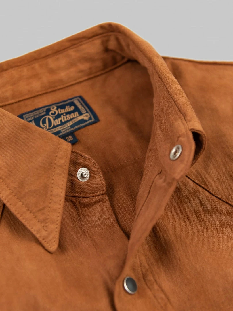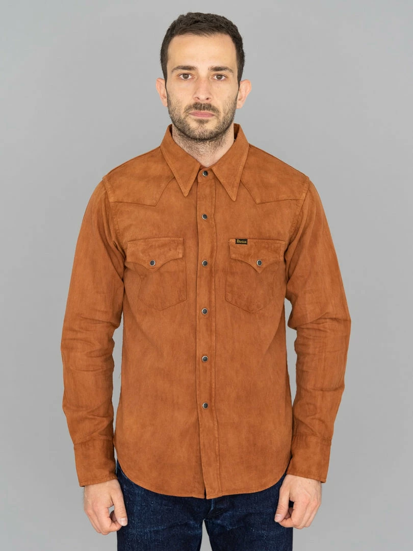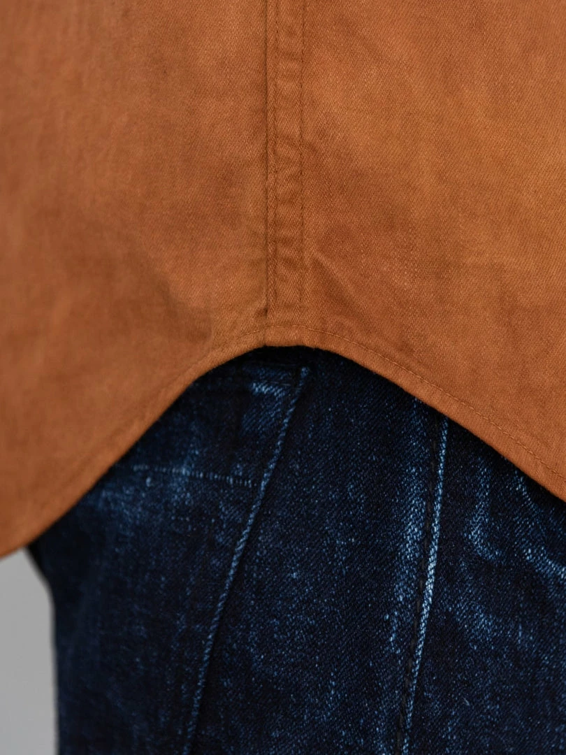 This is, undoubtedly, one of the most memorable western shirts we have ever seen. It is unique because it features a very traditional (1300-year old) and natural method of mud dyeing from Amami Oshima, a collection of islands north of Okinawa, that gives unique brown earthy colour to textiles.