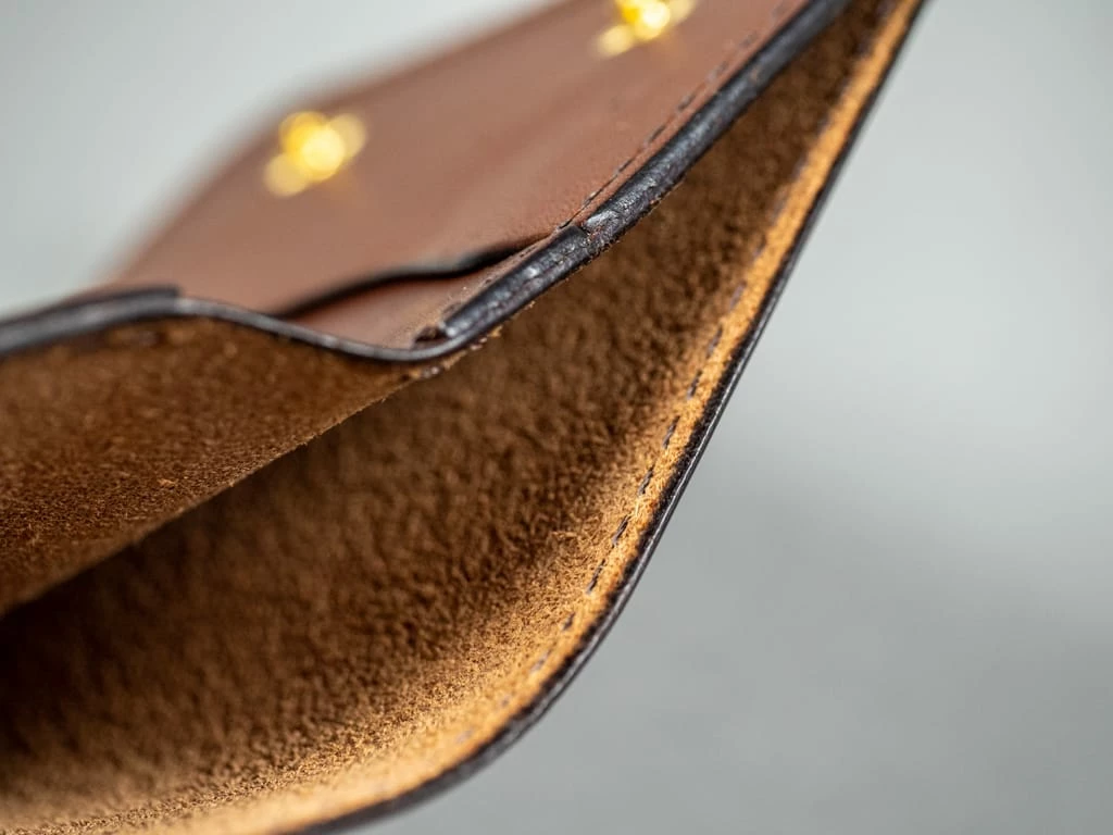 The leather is pit tanned in Himeji for 2-3 months, stuffed full of oils and tannins. It has a semi-firm temper with a soft texture and a light nap (bounce). A delight for the veg tan purist. It will age with a load of character and patina.