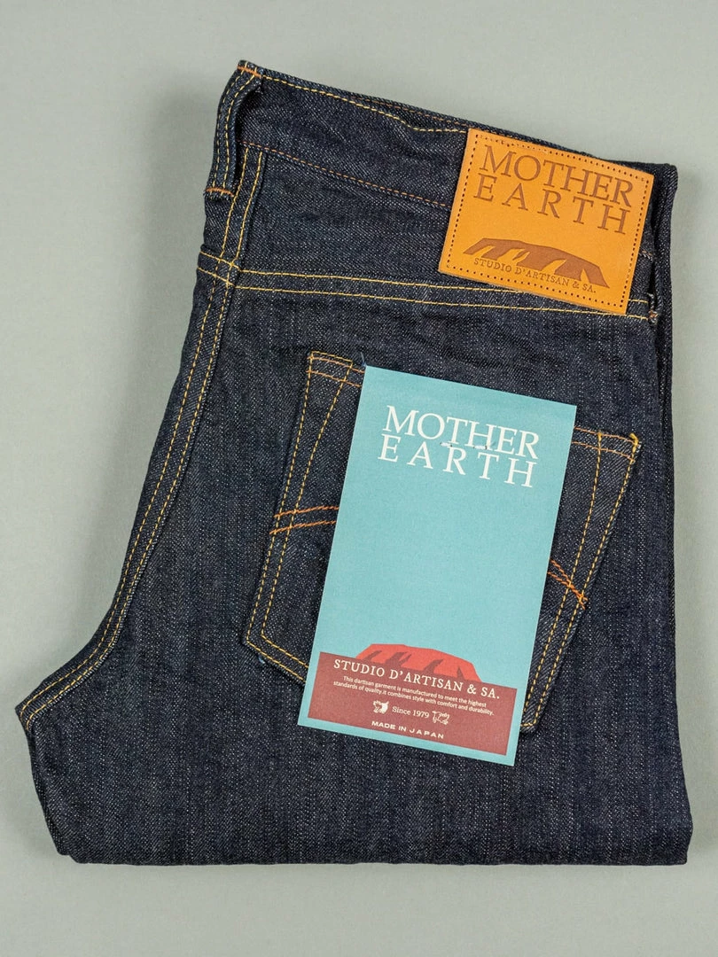 This Mother Earth denim fabric is woven using an old Toyoda G3 shuttle loom. The Toyoda automatic loom “G3” was first introduced half a century ago. As the earliest power loom in Japan, the maintenance can be challenging simply because there are no more new replacement parts available; when maintenance is needed, they can only replace the parts by gleaning the parts that are still functioning from the same models which are no longer in use. Besides, it has very low productivity as it weaves only 5 meters of fabrics per hour. However, G3 is the only machine that still weaves the same workwear-like denim that had a unique rough surface, yarn evenness and ruggedness as what it did half a century ago. Studio D’artisan is carrying on the legend of the earliest power loom “G3” and producing original denim with it.