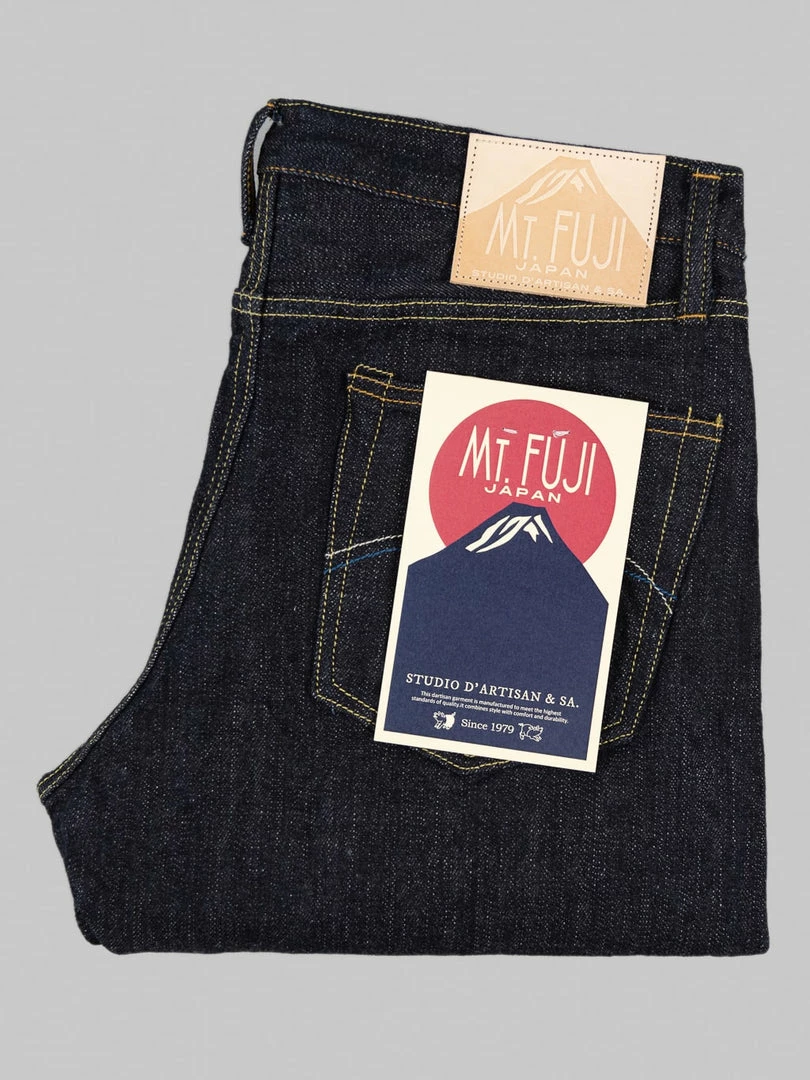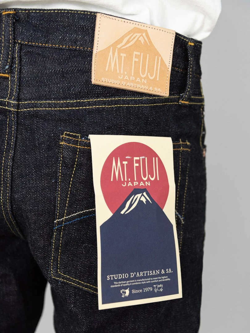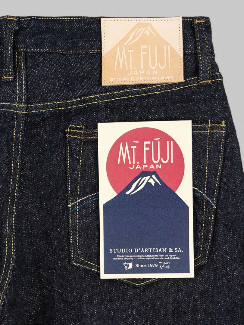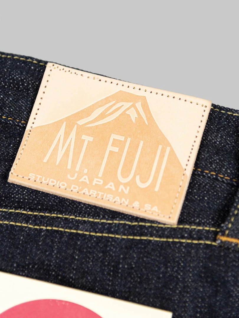 To closely match the rocky face of Mount Fuji, the weft features a grey colour, and the pockets and waistband lining use a unique “Yamagata” pattern sashiko that reminds us of Fuji snow peaks. This denim is as powerful and dignified as Mt Fuji, a world-class symbol of Japan.