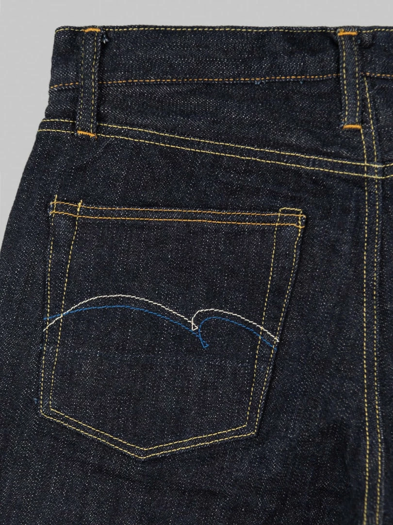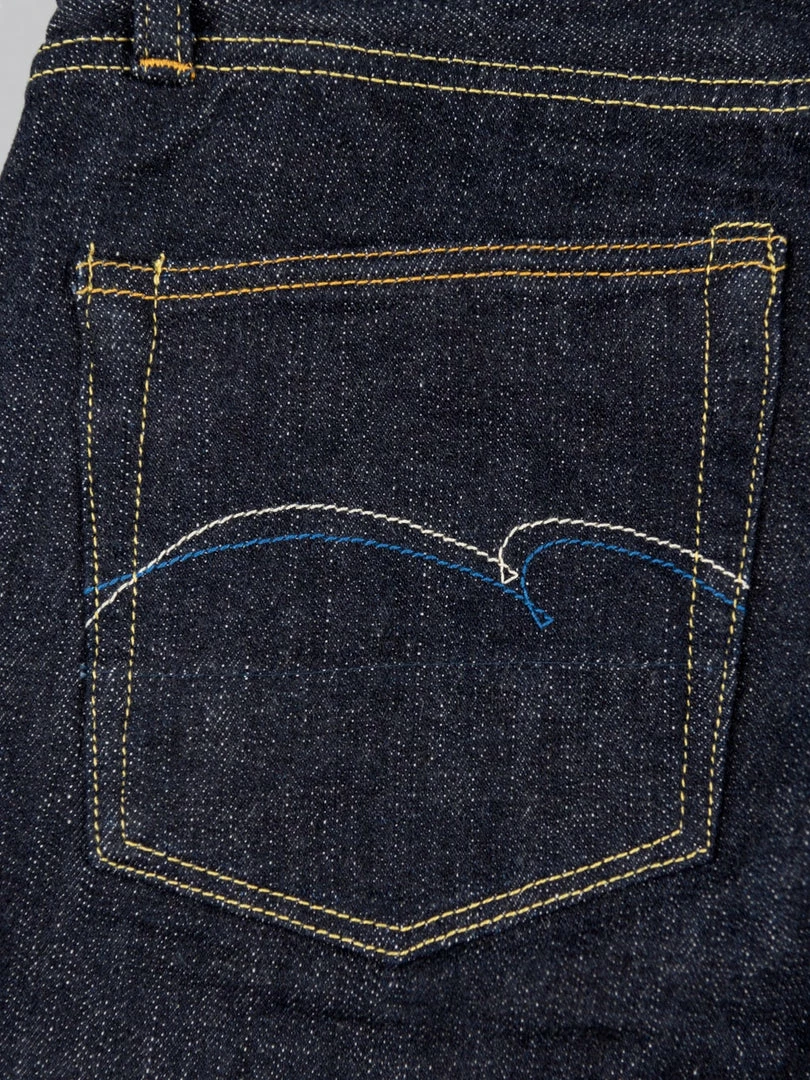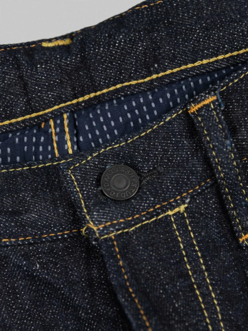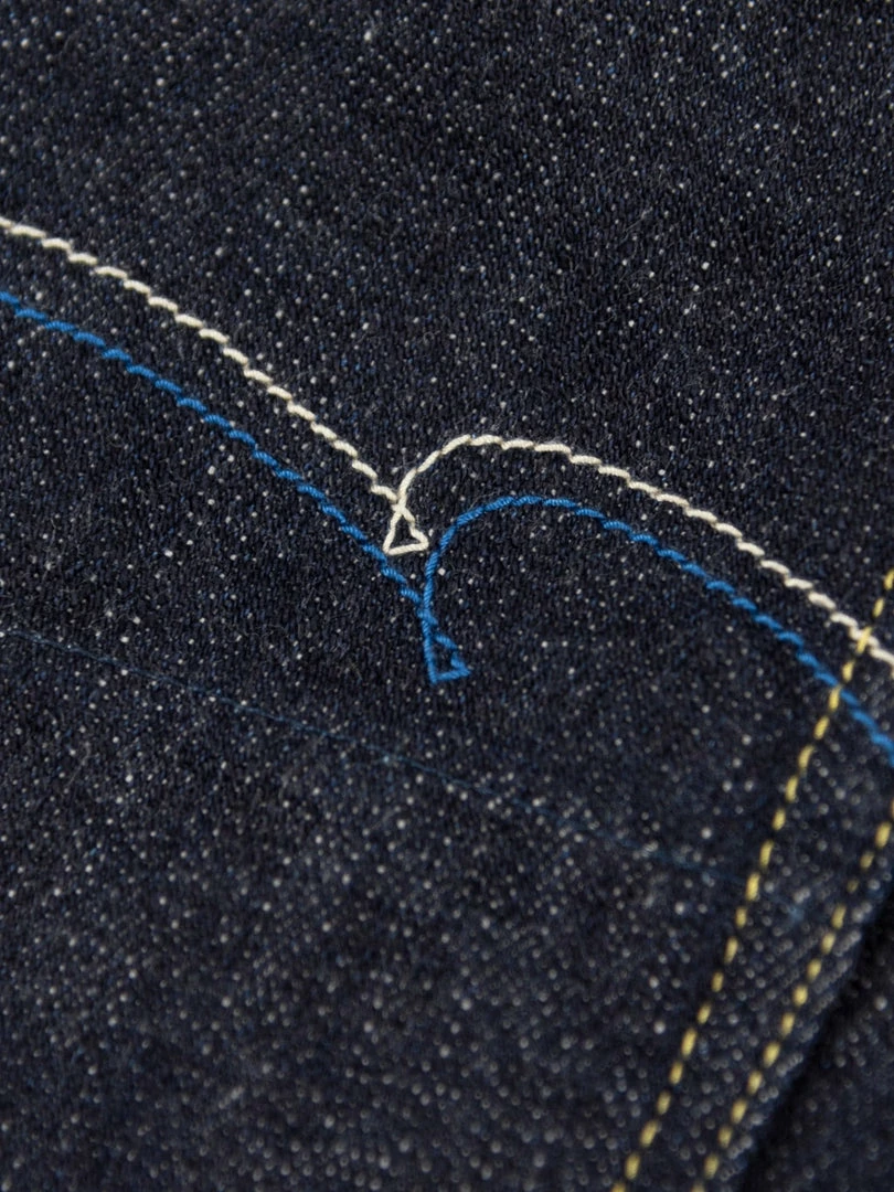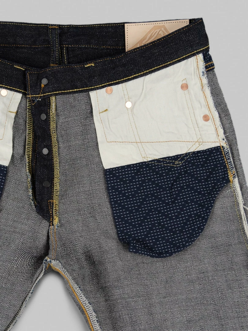 To closely match the rocky face of Mount Fuji, the weft features a grey colour, and the pockets and waistband lining use a unique “Yamagata” pattern sashiko that reminds us of Fuji snow peaks. This denim is as powerful and dignified as Mt Fuji, a world-class symbol of Japan.