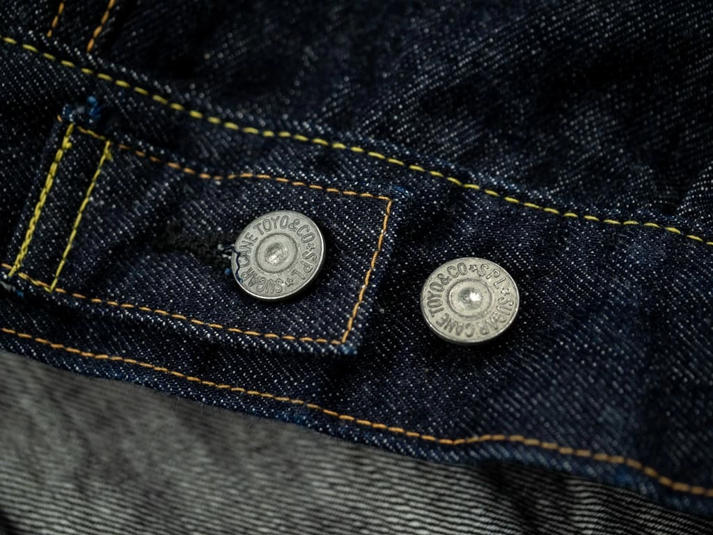 Sugar Cane has studied and paid the closest attention to the entire process of recreating vintage denim fabric, such as spinning, weaving, dyeing and stitching. Accordingly, their denim has been loved and appreciated by many denim heads worldwide for a long time, establishing their 1953 model as a timeless classic piece. The weaving process is slow and time-consuming, with only a limited amount of fabric produced per day on vintage Toyoda shuttle looms. The weft is then driven in with greater force, causing the weft yarns to overlap, resulting in an uneven surface and a tight weave. The denim fabric thus completed is dense and thick, and the more it is worn, the more it develops a bite and a taste. Sugar Cane continues to produce this kind of vintage-based denim today while maintaining old machines in top condition.