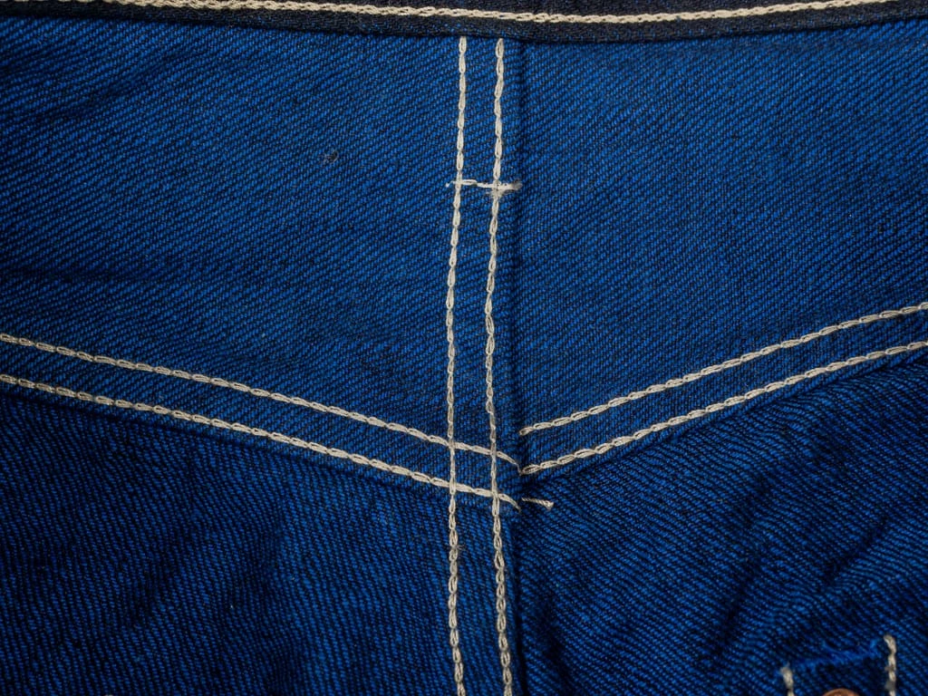 The colour reminds us of the Tanuki blue that runs through all their products: YURAI means source. The denim is rich in slub and fuzziness on the surface and thanks to the loose weave, the cobalt blue peaks through the surface, which adds depths to the denim. The electric blue fades will be very unique. The banana and light beige stitching adds just the right amount of contrast to this fabric.