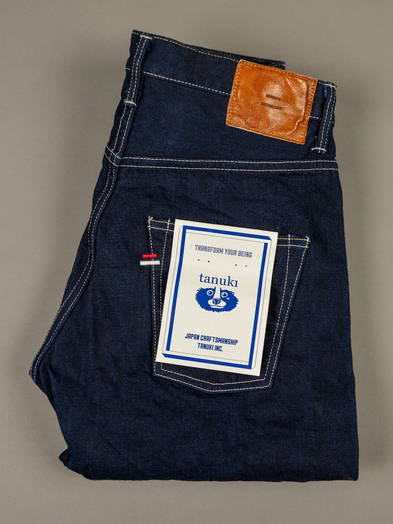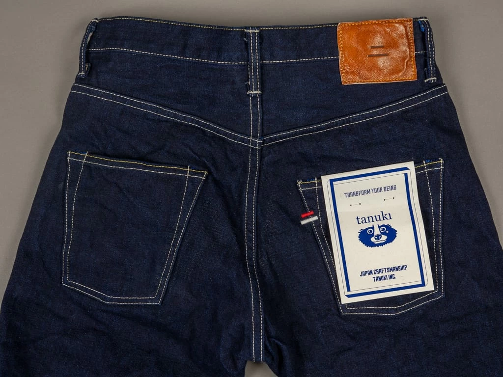The jeans are made with all the superior-quality Tanuki details such as copper buttons, embroidered logo back pocket detail and the iconic Tanuki custom vegetable-tanned deerskin leather patch. Tanuki has included a Japanese extra-durable herringbone cotton-lined fabric in front pockets and an electric blue and white selvedge ID.