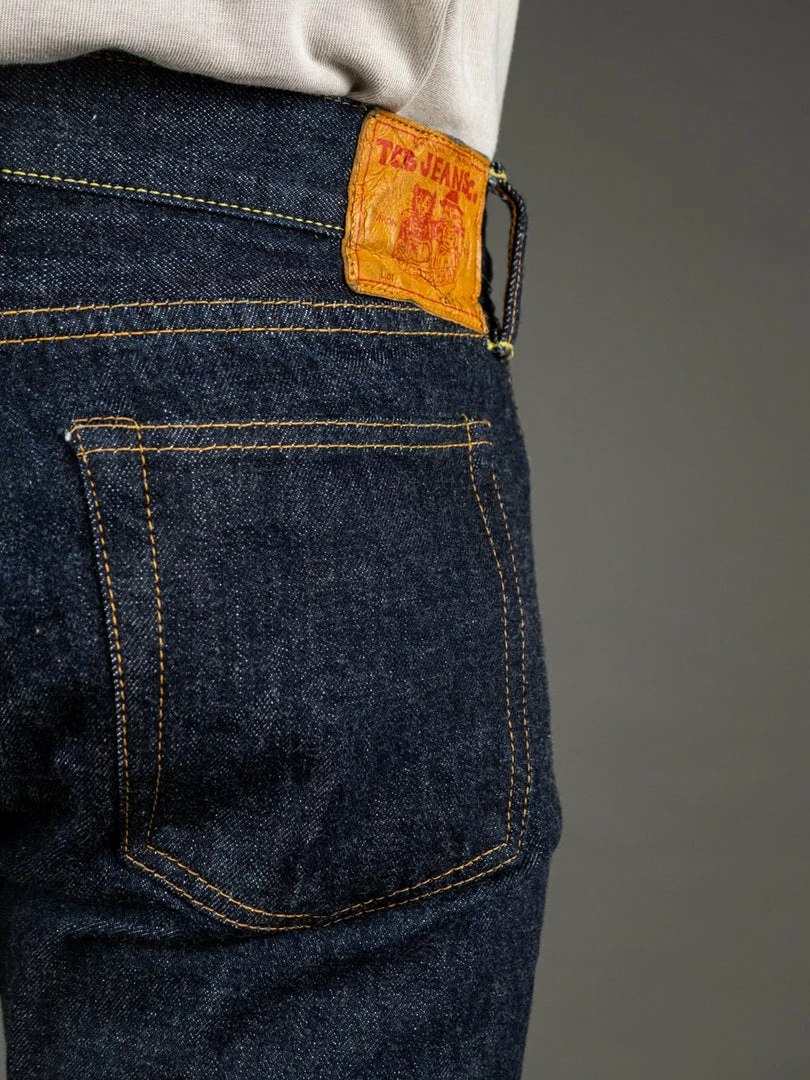 The jeans are produced with the same material and sewing methods as the TCB 50’s jeans, but with a deerskin leather patch instead of paper.