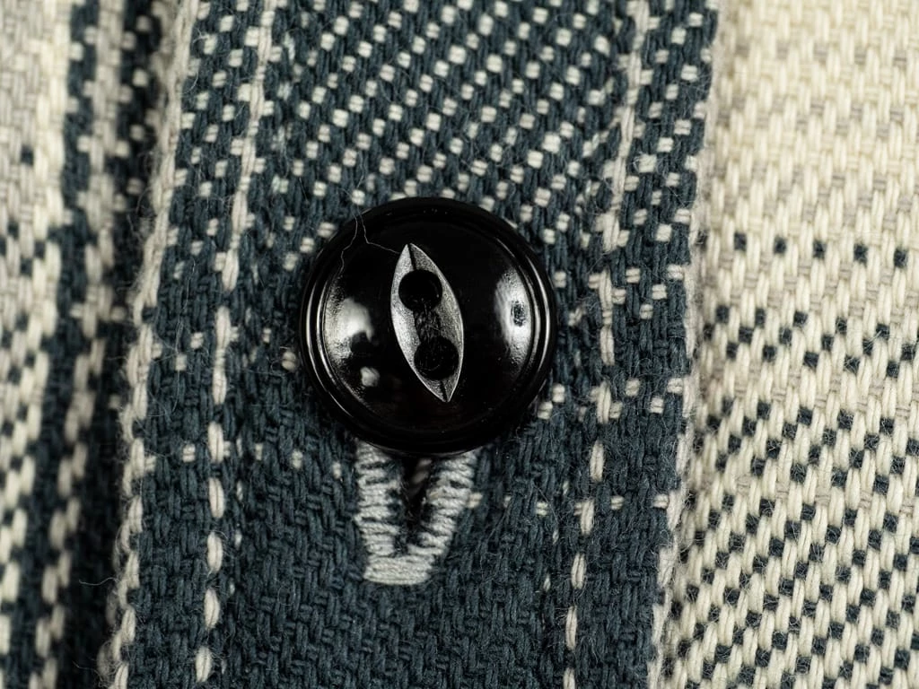 It features a classic workwear style but in a slightly slim silhouette, with great attention to detail that includes cat-eye buttons, black cotton backing in sleeves and collar, and a soft-to-the-touch brushed inside, ensuring an insulating, comfortable wear.