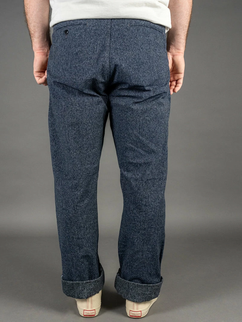 From the factory to the farm, the garage and the delivery route, the humble work pant is an emblem of hard, honest work. The most popular of the last century has undoubtedly been the chino trousers style, and one of the most common fabrics of the first half of the 20th century was salt & pepper.