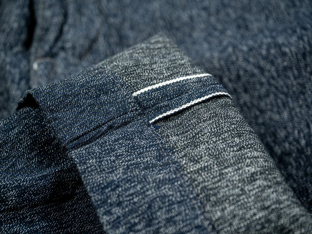 - 10 oz. selvedge salt & pepper, indigo fabric, milled in Japan. The pants are pre-washed so expect no shrinkage