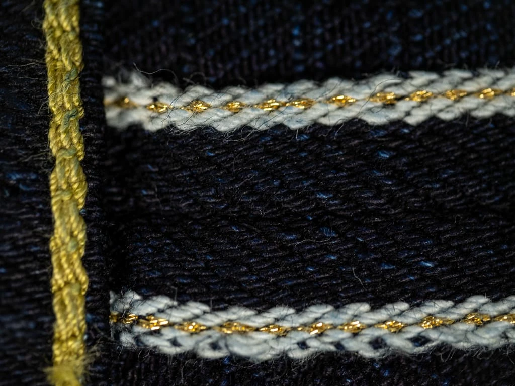 - Unsanforized one-wash selvedge 15.5oz double indigo fabric