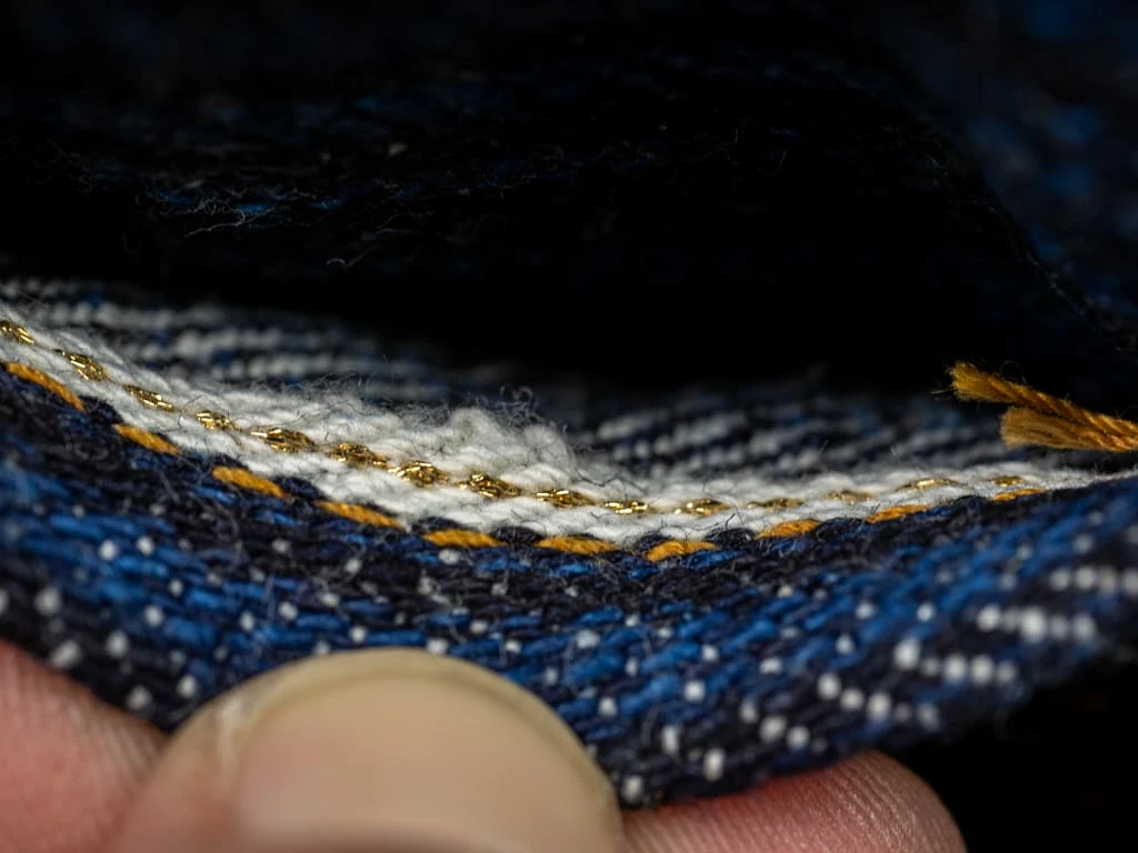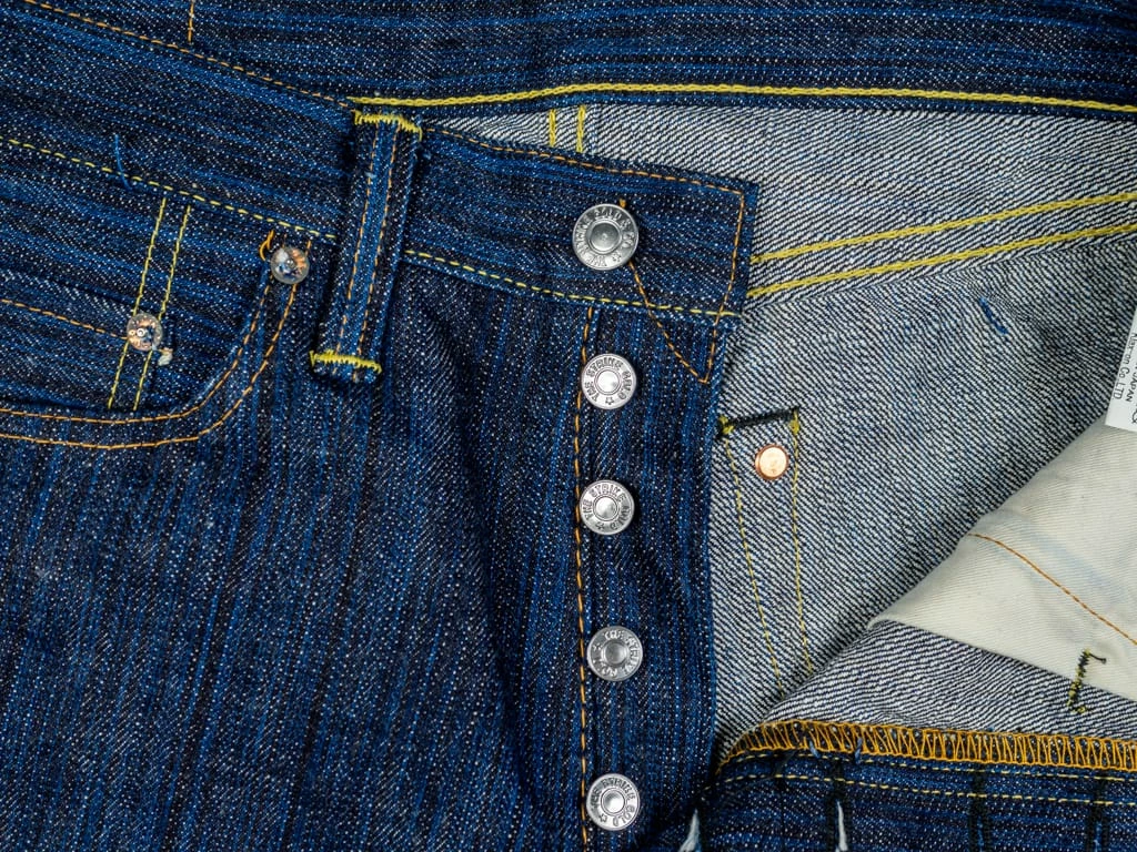 - 16oz unsanforized two-tone indigo rope dyed Japanese “Shower Slub” selvedge denim. It is a one-wash version so expect no shrinkage