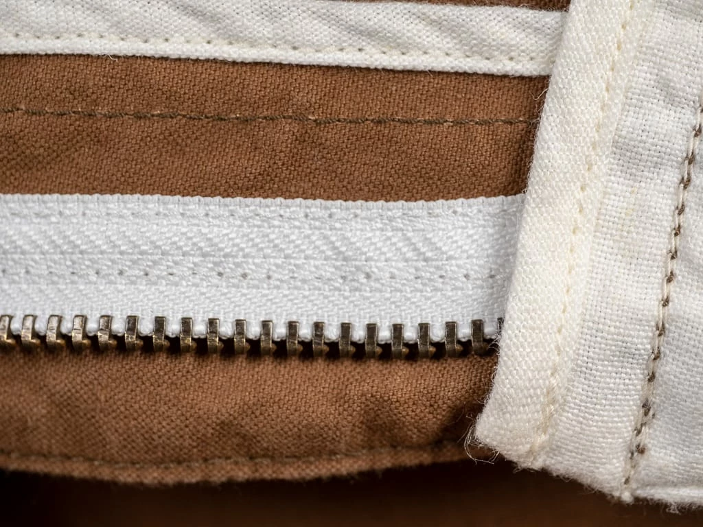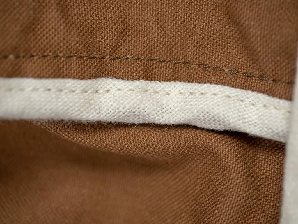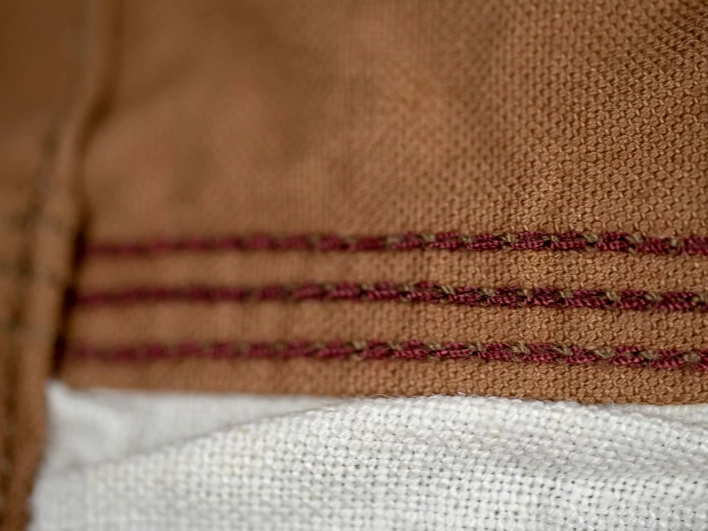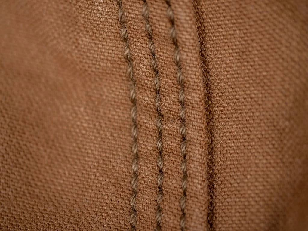 Duck fabric is woven with two yarns together in the warp and a single yarn in the weft. By far the most popular workwear fabric, cotton duck is a weighty, plain-but-strong woven canvas. Despite its name, this hardy workwear fabric has nothing to do with waterfowl or their feathers. The term “duck” comes from the Dutch word doek, which refers to a linen canvas once used for sailors’ white trousers and outerwear.