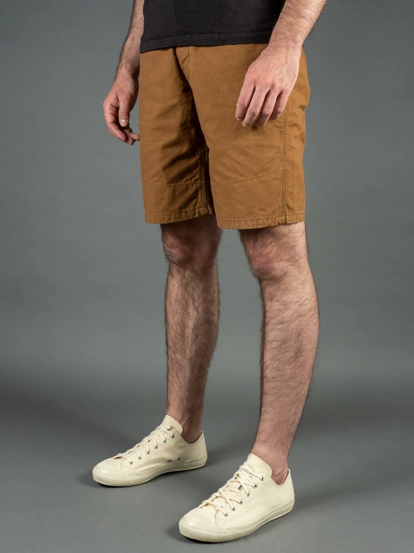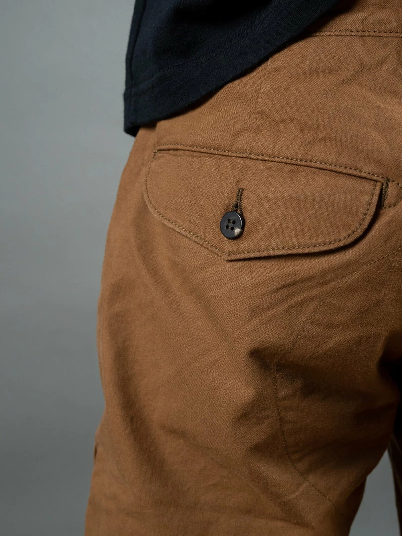 UES Duck Shorts are made from the highest quality organic Zimbabwe cotton, harvested in the African highlands without using any chemicals. Weaving is done using treasured, old fashioned shuttles. Although productivity may be low, weaving without an excess of tension creates an appealing fabric with a depth that doesn’t detract from the original texture of the thread. Reactive dyes that fade to similar colours are used in the dying thread process. By wearing these pants, the texture increases, and the colours become enriched.