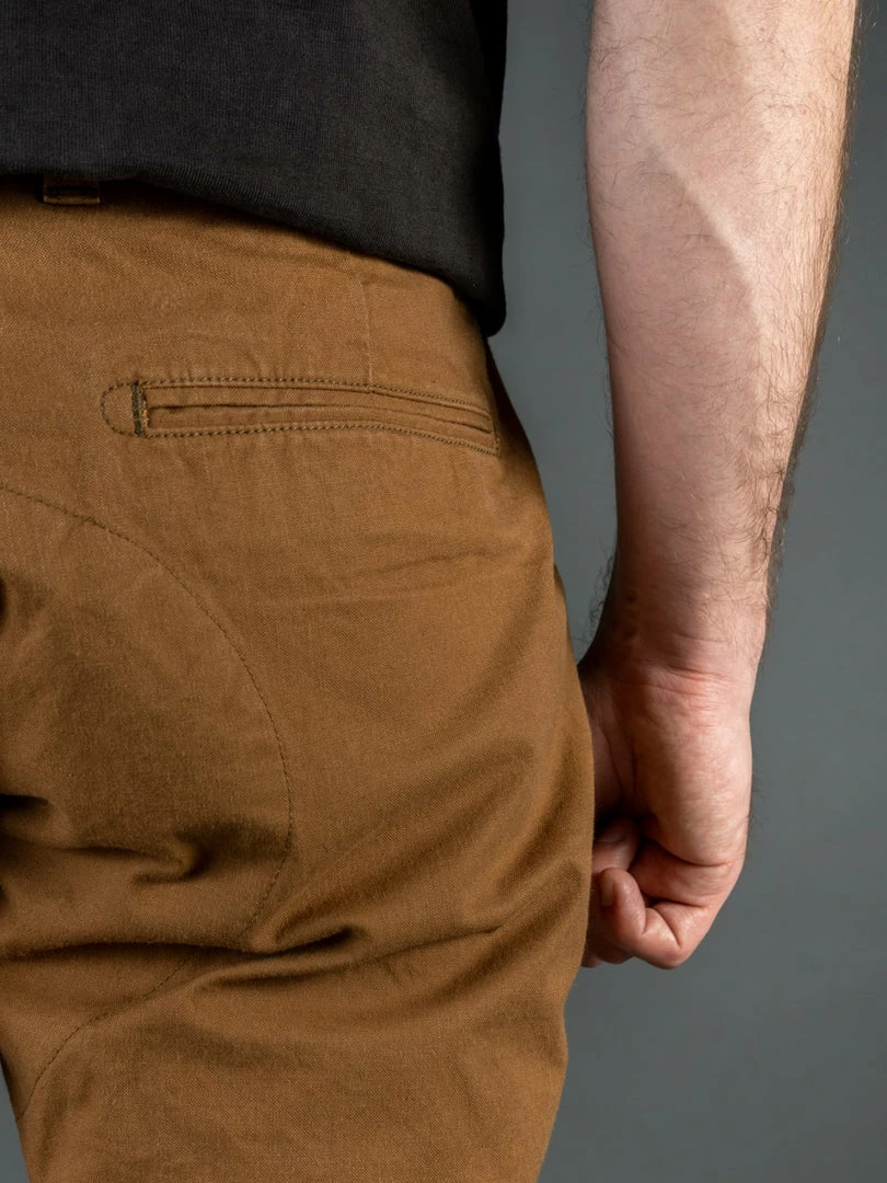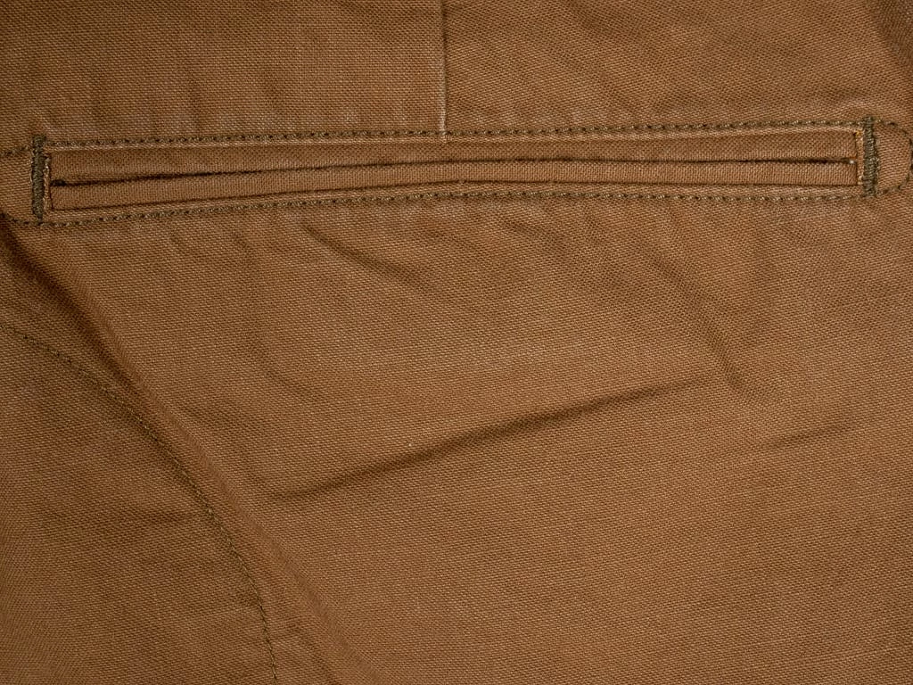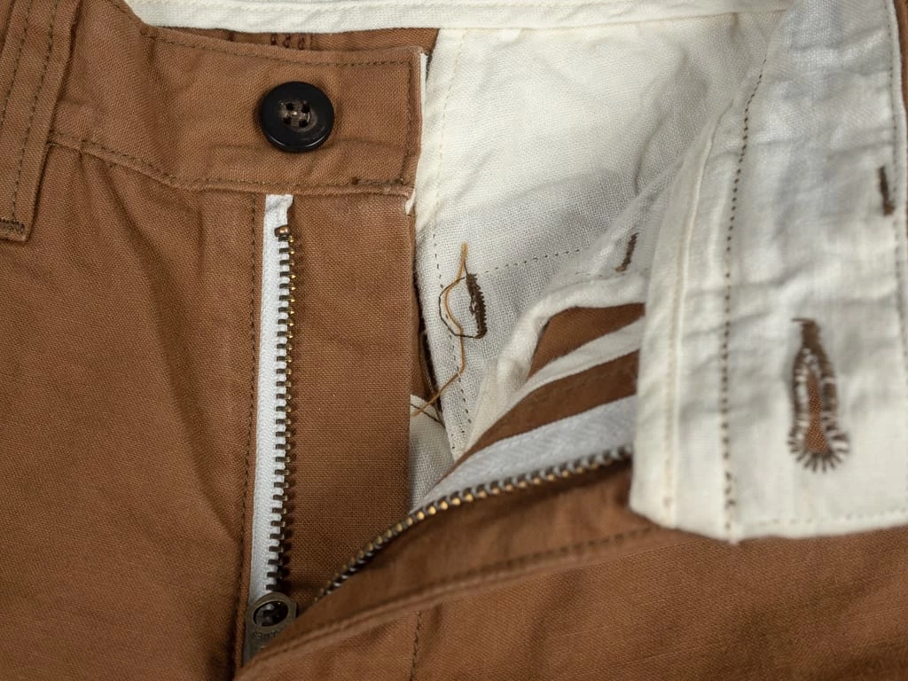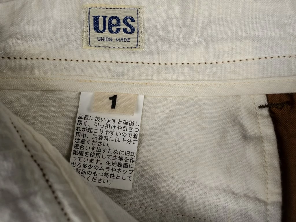 The construction is simply unbeatable. The interior has been patched by high-quality Japanese linen to power up the strength of texture in the crotch, waist and pockets. The fabric is already tough enough, but UES still enhanced them by triple stitching and reinforced fabrics. They are also tough enough for repeat washing, and the shape doesn’t even collapse at all.