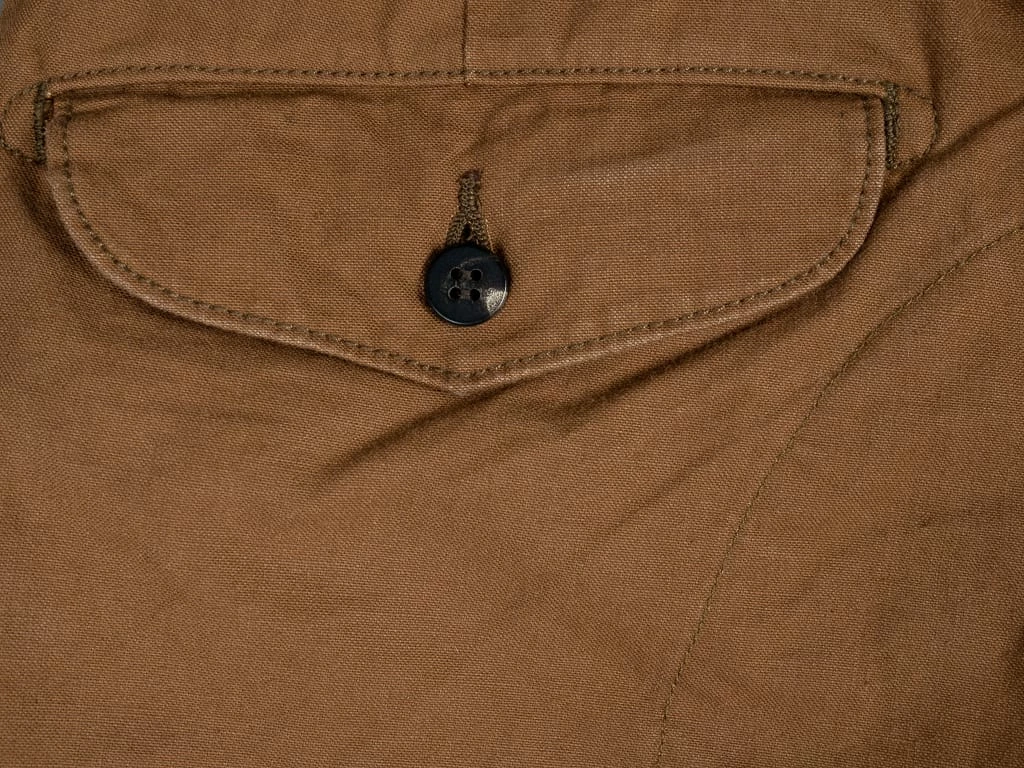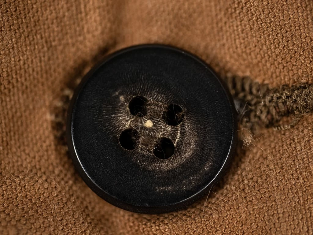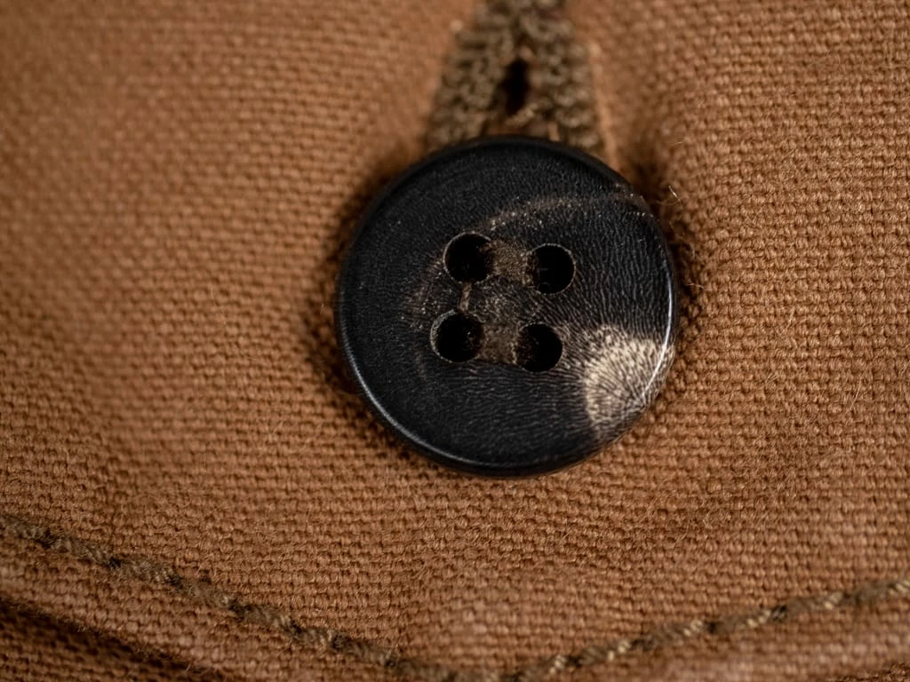 The fabric has been sulfur dyed, and the buffalo horn buttons are made from natural material from cow’s and buffalo’s horn.