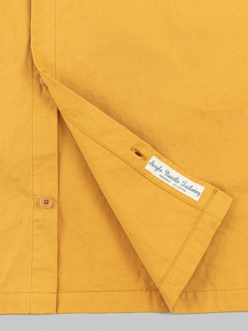 The fabric features a firm texture with uneven threads and tons of neps on the surface. The shirt is full of superior-quality details. It features a snap top button and uses an outstanding, highly skilled sewing process with a single-needle construction. Single-needle refers to the construction of an item as being wholly made with a lockstitch machine -which can include flat-felled seams. The counterpart to a single needle is a factory that uses automated equipment.